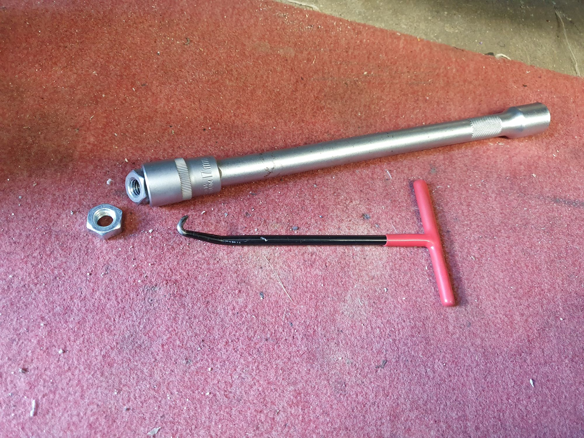 mit einer 17er Nuss und 1/2" Verlängerung das ganze gebogen (die hintere Aufnahme diagonal nach hinten/unten, die Vordere nach vorn/oben).