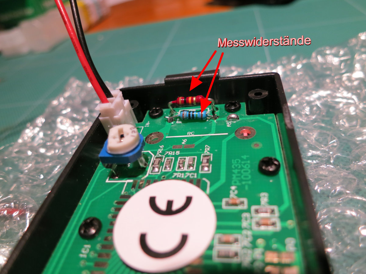 Wie ihr seht, braucht der 10MΩ-Widerstand nur umgelötet werden.