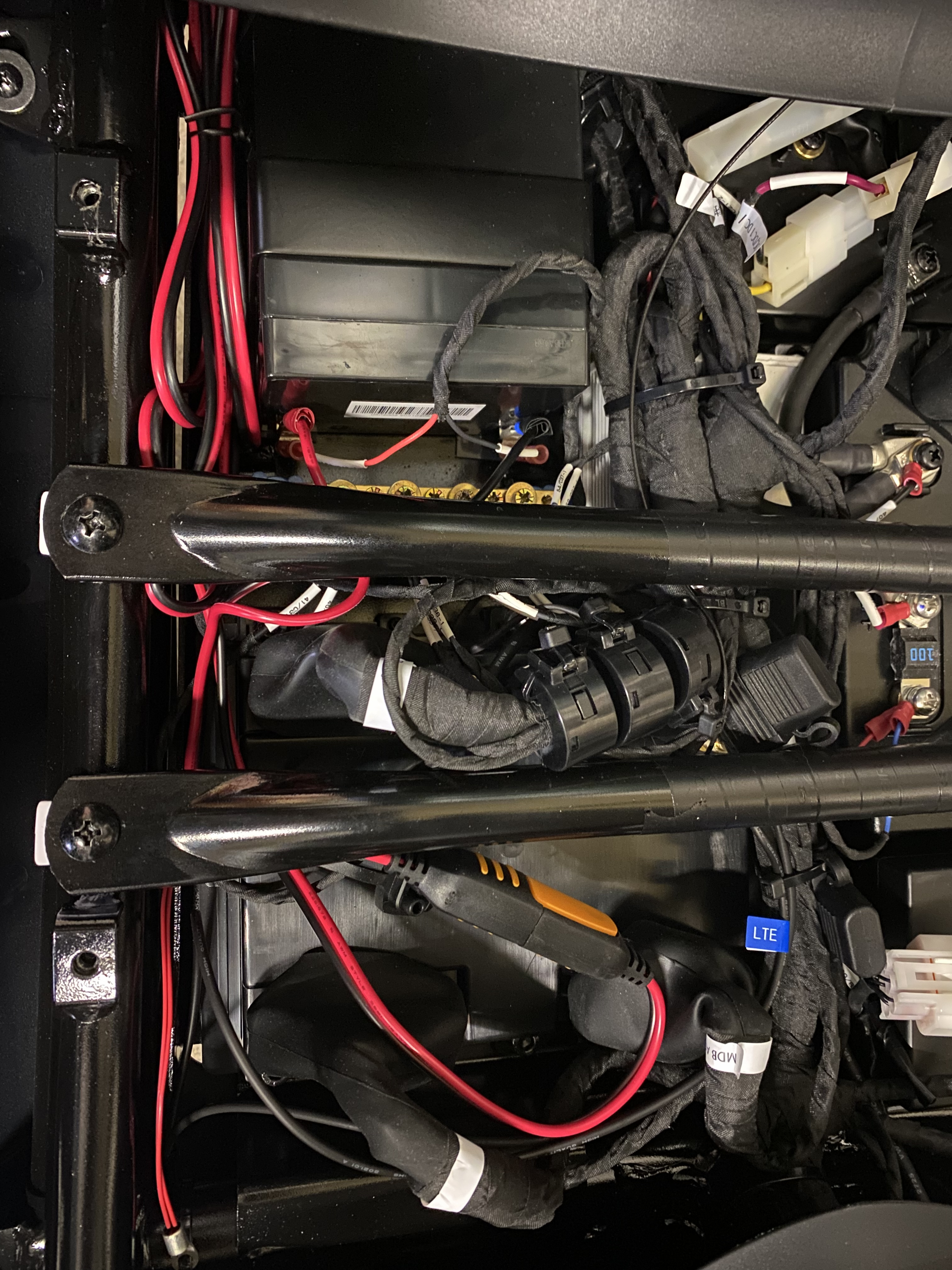 Die AUX ist ein 12V, 5Ah Blei-Gel-Akku, die CB liegt vorne links unter dem Trittbrett und ist quasi eine Powerbank mit 27Ah. Sie hat eine eingebaute Ladeelektronik und wird direkt vom Fahrakku geladen. Ausgangsspannung ist 5V. Intern sind 6 Li-Ion Zellen 21700 (parallel) verbaut.