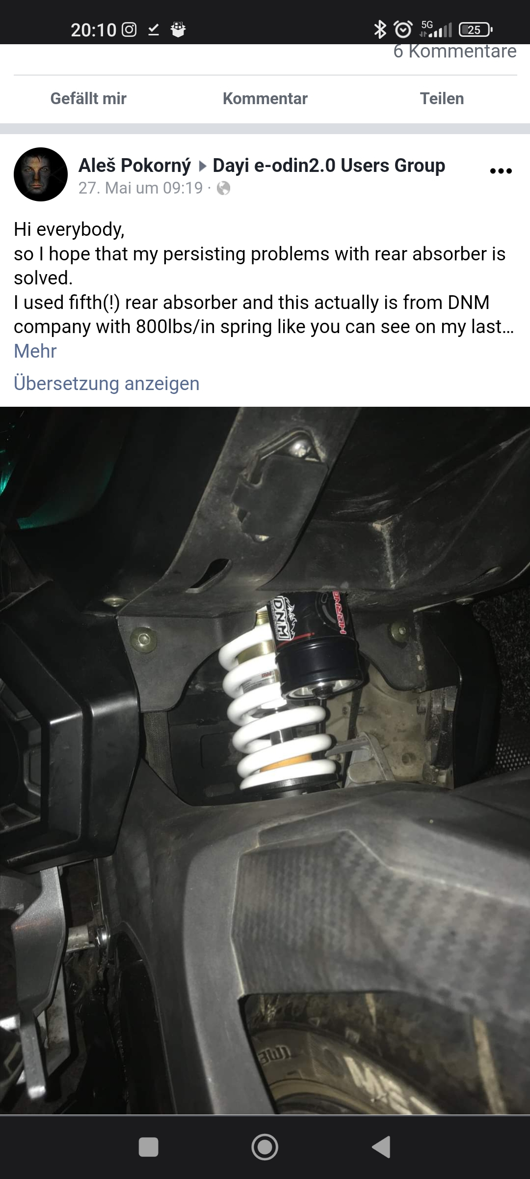 Hi bei 130ah Akku musst du mindestens 13 std Laden da es ja nur 10 A die Stunde schaft. Ohne Verluste. 100 kmh ist auch eingetragen mehr Schaft das Motorrad wohl mit unser mehr Gewicht nicht. Es gibt eine alternative zum Original Stoß Dämpfer hinten ist aber etwas mehr Aufwand da man ein zusatz Loch Ausschneiden muss.