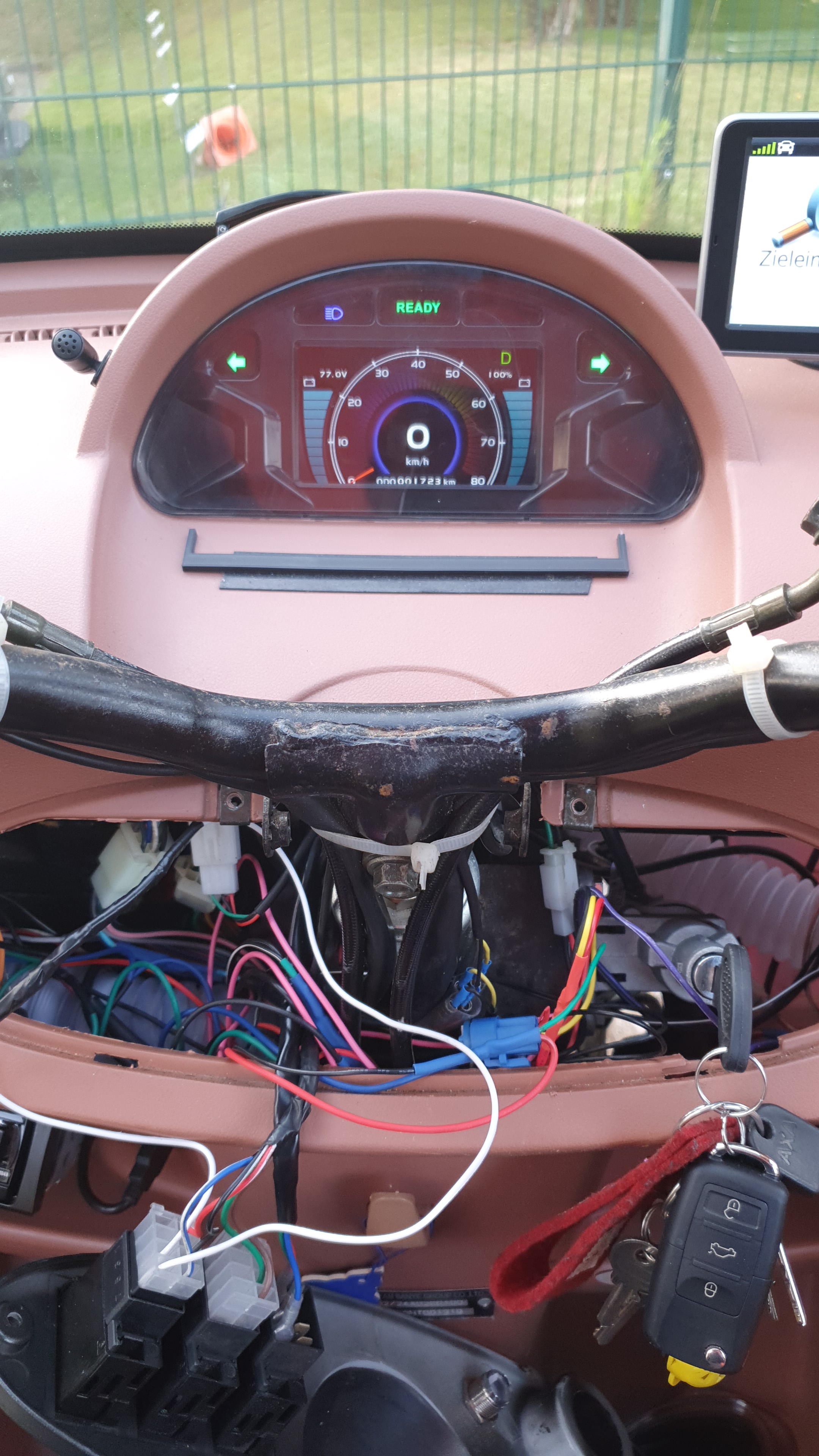 Moin moin, habe jetzt mal angefangen das Tacho umzubauen der Stecker paßt so schonmal ohne was zu ändern. Problem war die kammera sobald ich das Kabel vom alten Display angeschlossen habe ist das Tacho in den Rückfahr kammera Modus gesprungen und man konnte nicht vorwärts fahren aber rückwärts und in N fuhr er auch rückwärts ich konnte das Problem lösen in dem ich das Kabel vom Display ab isoliert habe ( hat 3 Phasen rot,gelb,schwarz ) das rote Kabel habe ich mittels kabelschuhe an den Gang Schalter gemacht und das schwarze Kabel habe ich durchtrennt. ( sonst konnte ich nicht vorwärts fahren ) nun fährt er und zeigt mir auch bild im Rückwärtsgang. Nun habe ich aber noch 2-3 Kleinigkeiten die ich so nicht hinbekomme: die blinker leuchten durchgehend, blinken aber wen ich blinke. Fernlicht leuchtet auch solange bis ich Fernlicht an mache ( den ist es aus )