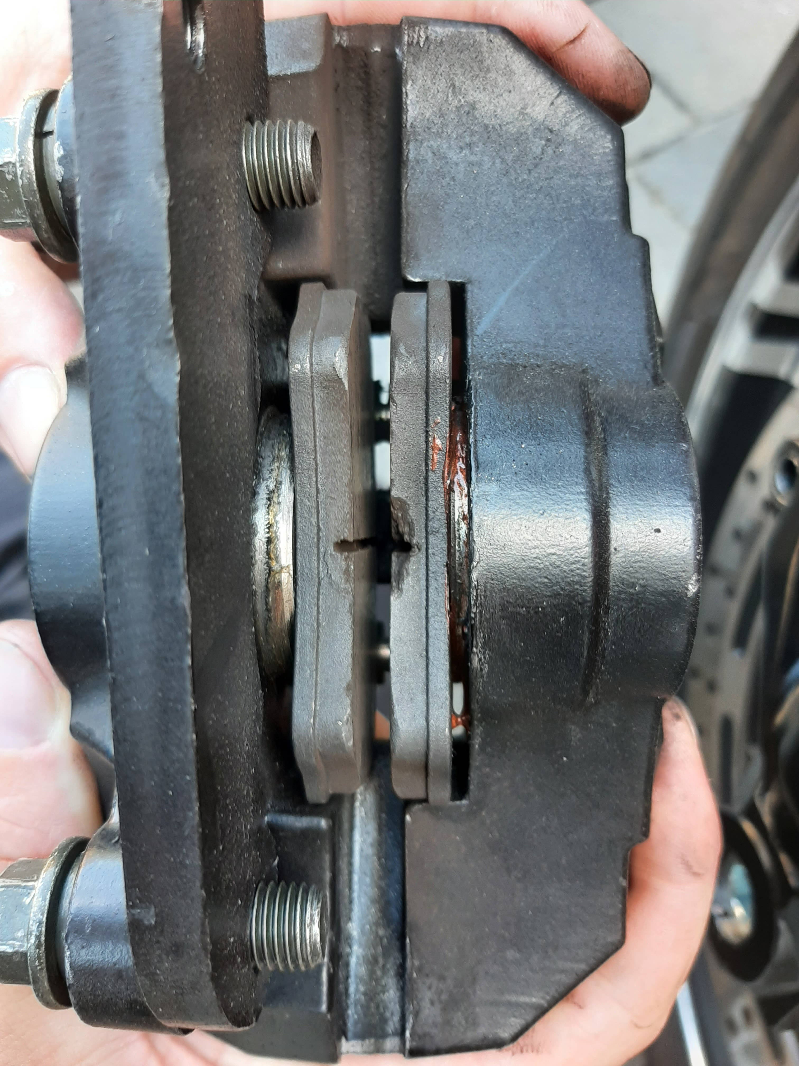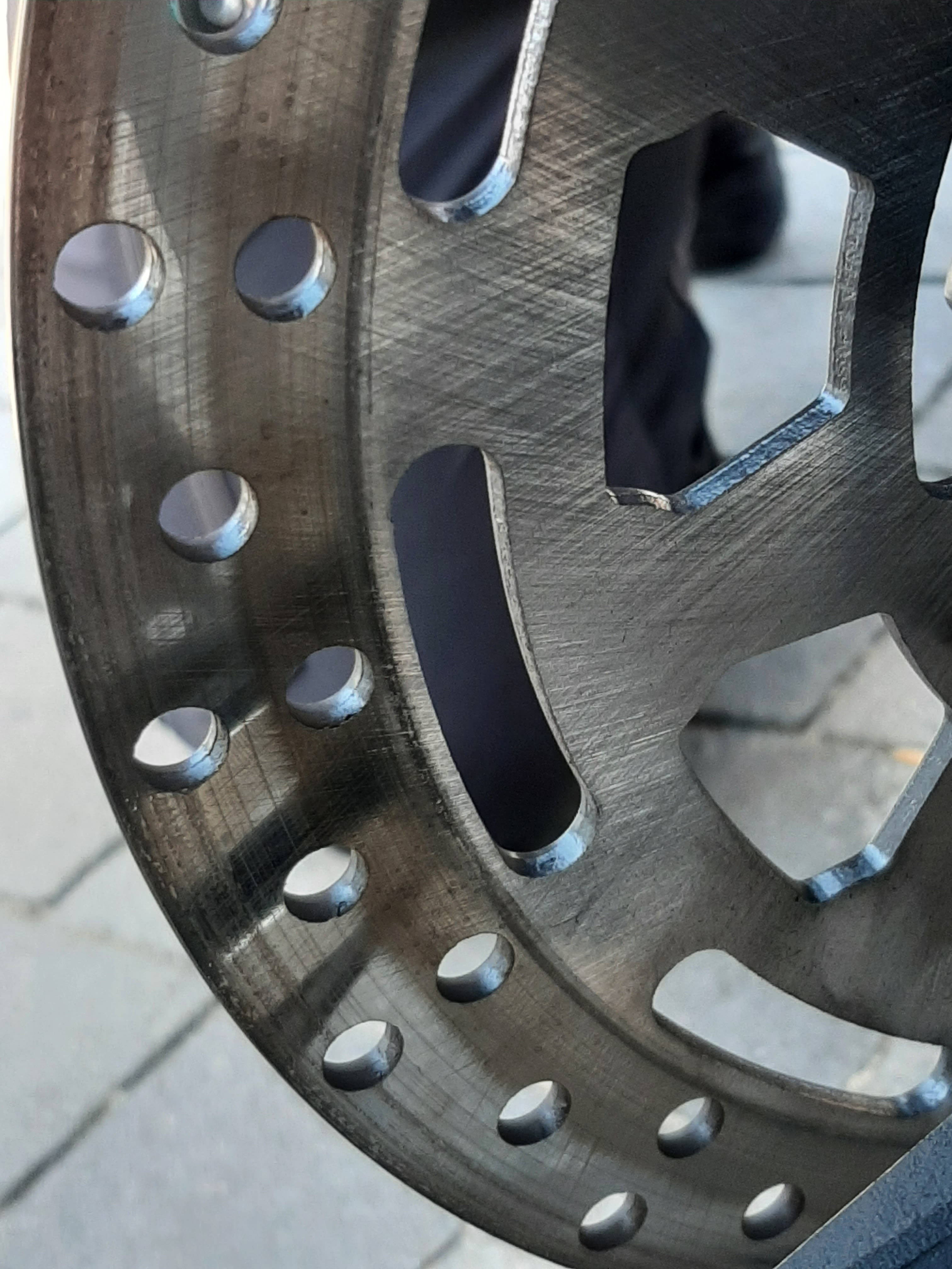 Das Tragbild einer Bremsscheibe ist aus der Hölle, die entsprechenden Bremsbeläge sind brüchig und auch an verschiedenen Stellen der Bremssattelaufhängung sind indiskutable Mängel ersichtlich - bin echt gefrustet