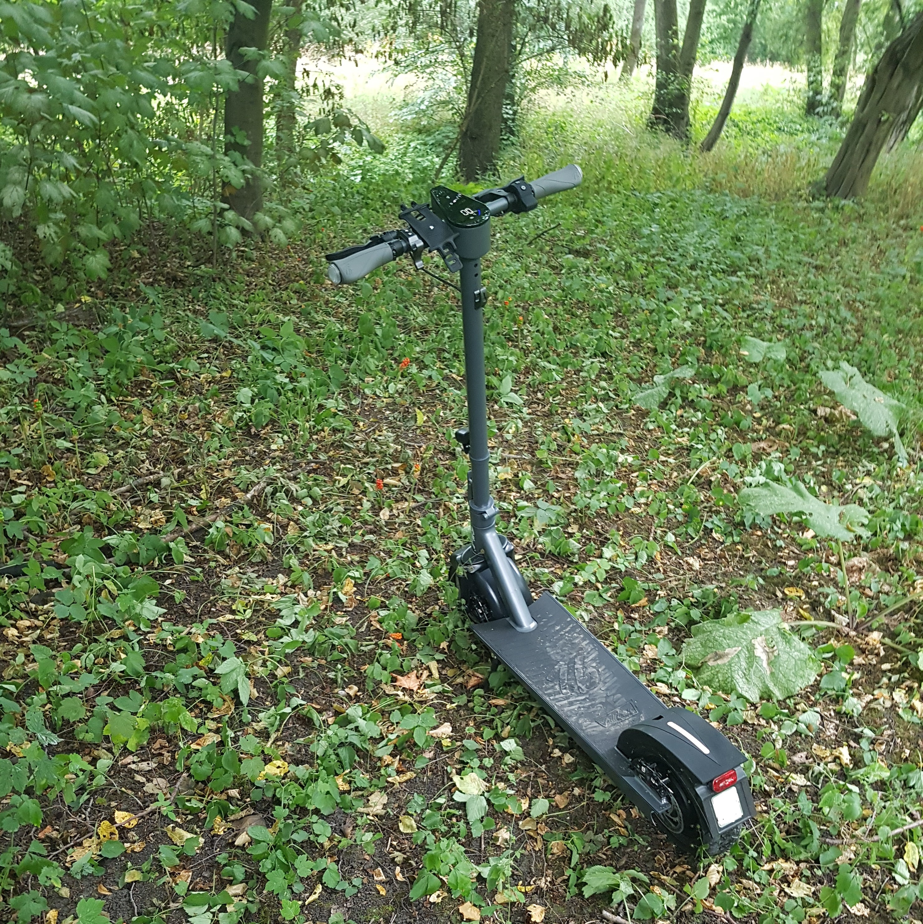 es ging zum Testen in den Deister bei Hannover. Mit der Straßenbahn zum HB da in die S-Bahn bis Egestorf am Deister. Von da ging es mit dem Roller die Straße entlang bis zur Nienstetter Straße. Sie führt hinauf bis zum Nienstetter Pass. Der hat eine Steigung bis zu 4,6%. Das ist für den Roller kein Hindernis. Er fuhr mit 20,3 - 21,5 laut GPS hinauf. Auf dem Parkplatz ging es dann links den Kamm entlang bis zum Annaturm. So schnell war ich noch nie da gewesen ( mit dem Fahrrad war ich noch nie da gewesen ). Weiter ging es zurück zum Nordmannturm.Weiter ging es Richtung Bössquelle. Ca. 5 km davor sah wie der Akku zur Neige ging. Also kehrt und wieder zurück zum Nienstetter Pass Parkplatz. Den gleichen Weg zurück wie ich heraufgefahren war. Ohne Daumengas bis zu 34 km/h erreicht mit dem Roller. Wenn ich Daumengas gab setzte die Motorbremse ein die den Roller aber nicht merklich abbremste. Für meinen Geschmack könnte da mehr Bremswirkung herauskommen. Auf dem Kammweg ging es mehr als 4,6% herunter. Da musste ich die Bremsen einsetzen um keinen Sittig zu machen auf dem Schotterweg / festem Sandweg. Egal, der Akku hatte gerade noch bis Egestorf Bahnhof gereicht. 52 km war die Gesamtfahrstrecke. Da der Akku noch neu war wollte ich den auch nicht so quälen. Deshalb ging der Rest des Weges von der Stadtbahn per Beinantrieb weiter.