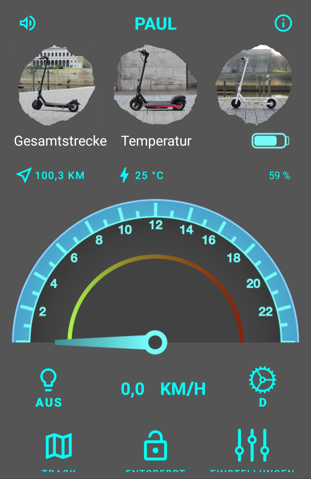 Die App ist ein etwas nützlicher Helfer. Brauch ich nicht so wirklich. In der App für mich wichtig, das man umstellen kann zwischen Anschieben und fahren oder aus dem Stand anfahren was mir persönlich besser gefällt. Dann die Codesperre womit man den Paul sperren kann………. Naja, besser Anschließen an einem festen Pfeiler. Besser ist das.