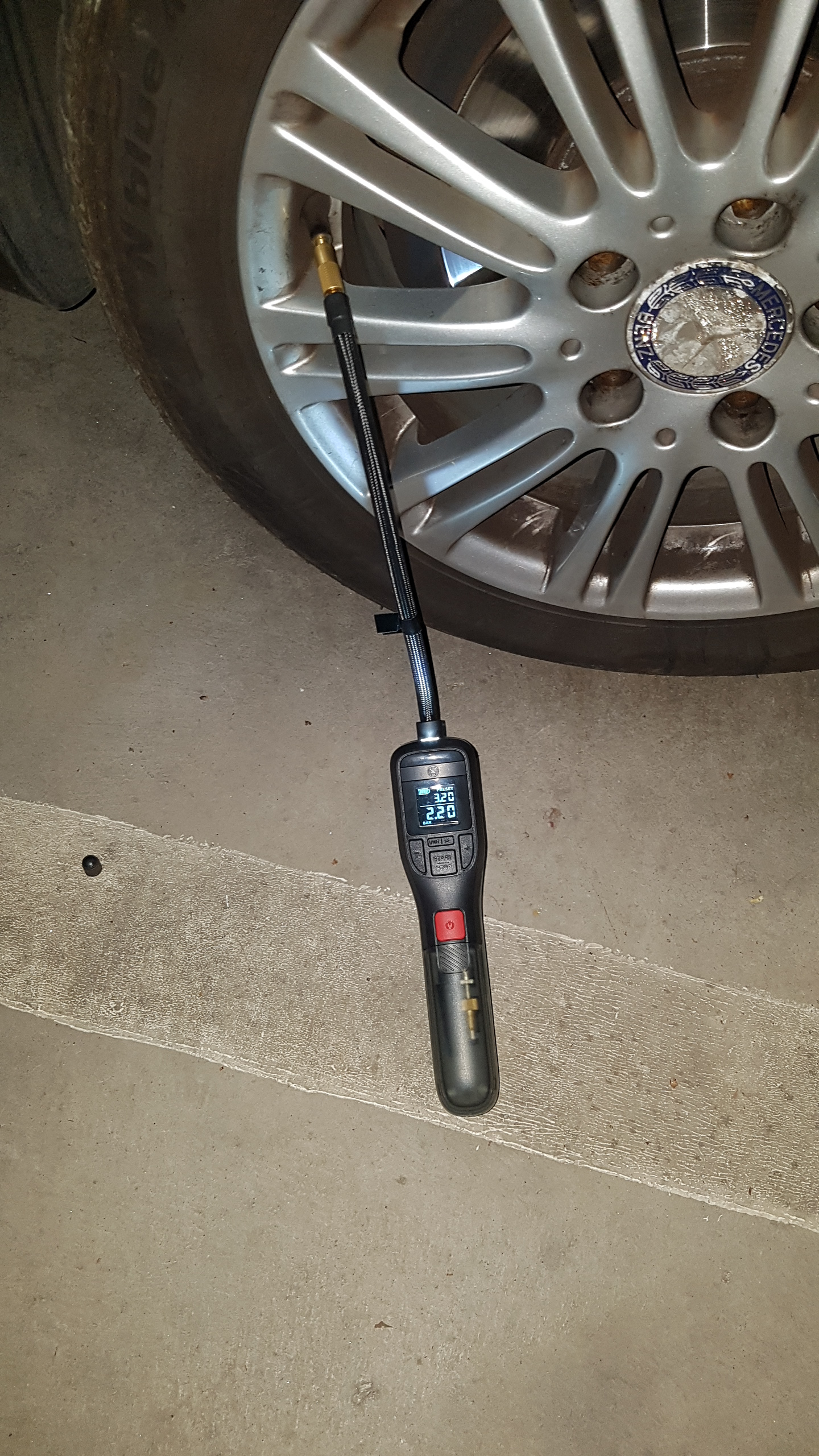 das ist die Aukkuluftpumpe von Bosch für 64€ ( eigendlich teuer, aber ich brauchte sie gleich und nicht in 5 - 50 Tagen ). Das Manco ist das beim Auf / Abschrauben auf das Autoventil / Paulventil Luft entweicht. Ich gehe wie folgt vor, Aufsatz etwas aufschrauben auf das Ventil, Pumpe anstellen und weiter aufschrauben ( Tasächlicher Luftdruck wird dann angezeigt ) Beim Abschrauben lasse ich die Pumpe laufen und der Luftdruck wird dann so gehalten. Passt für mich. Der Akku hält für den Paul / Fahrrad Motorroller gut durch, aber beim Aufpumpen von vier Autoreifen nicht, aber dafür hat man dann andere Pumpen. Gute Fahrt