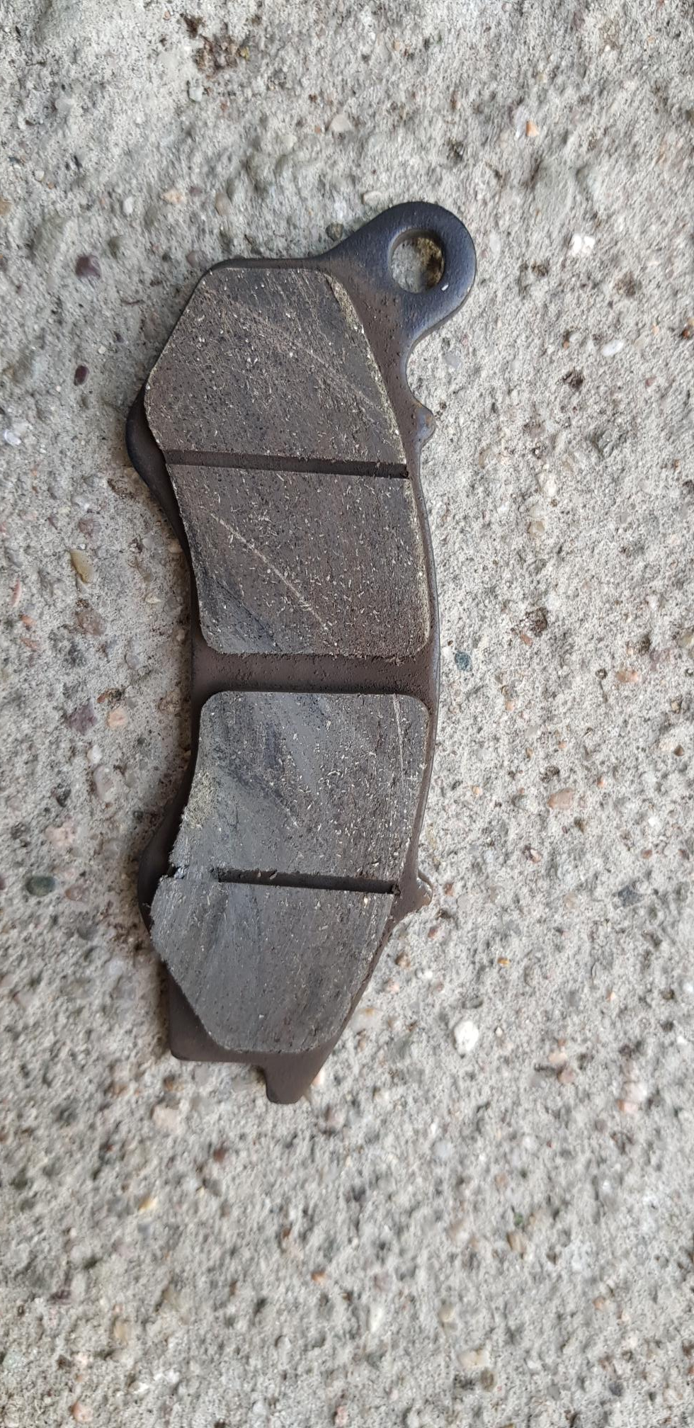 Der Gegenbelag auf der anderen Seite der Bremsscheibe ist doppelt so stark abgefahren wie der welcher sich gelöst hat. Aber hat noch mind.3-4mm Belag. Das heist, die Beläge fahren sich auch einseitig ab. Verhältnis 1:2 etwa.
