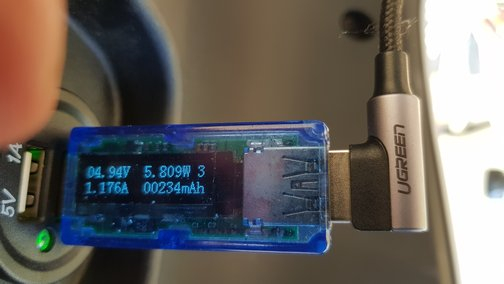 Das sind die Ladewerte meines Samsung S8 an der 2A-USB-Buchse (es sind ja nicht beide gleich!). Auch ich habe normalerweise eine deutliche Korrelation von Spannung und Ladeleistung - Spitze macht das Handy ca 1,7 A an 5V. Das hier kann sich sehen lassen bzw. reicht meinen Erfordernissen völlig.