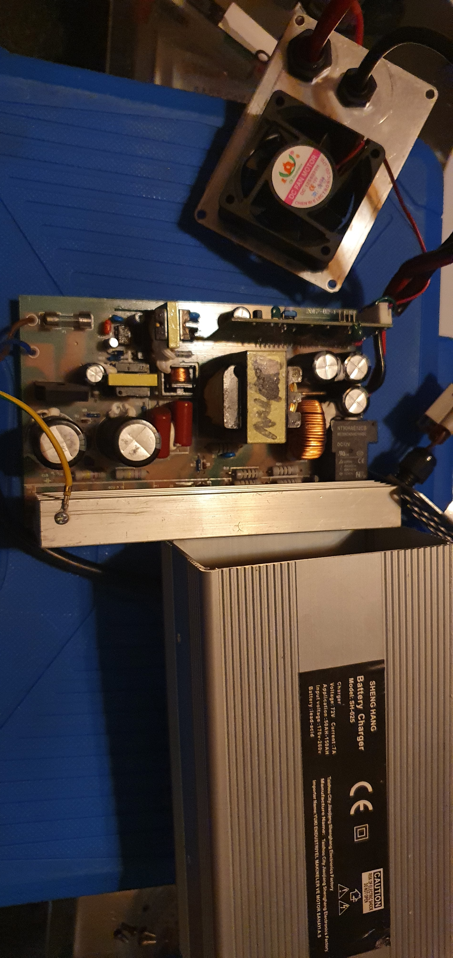 Ist dein Ladegerät rein zufällig das von Sheng Hang Modell SH-019 60 Volt 7A ? Hab mir vor 2 Wochen eine 3 Jahre alte Lizzy Comfort S gekauft. Alle Akkus hatten 11.76 V, laut Fachmann dann aber kaputt. Der hat mich wegen des hohen Preises aufs Internett verwiesen da sie dort doch teil billiger sind. Hatte auch Erfolg, aber leider im Gehäuseausmaß größer. Mit ein wenig Ideenreichtum hab ich sie alle 5 untergebracht. Nun wollt ich Vollladen und siehe da nach Anschluss des Steckers kommt kein grünes Lämpchen, also brauchte ich das Kabel erst gar nicht ans Netz hängen. Charger ausgebaut und siehe da, Ventilatoren laufen nicht, also wohl hin denk ich mal. Kenn auch keine Alternative zum alten Teil denn das alte Ding ist mom Nicht lieferbar. wenn also deines noch funktioniert würd ich es wenn möglich käuflich erwerben. Über Private Nachricht bin ich zu ereichen.