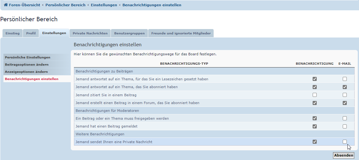 Kann es sein, dass es standardmäßig keine automatische Benachrichtigung per Mail gibt, wenn man einem Forummitglied eine PN schickt?