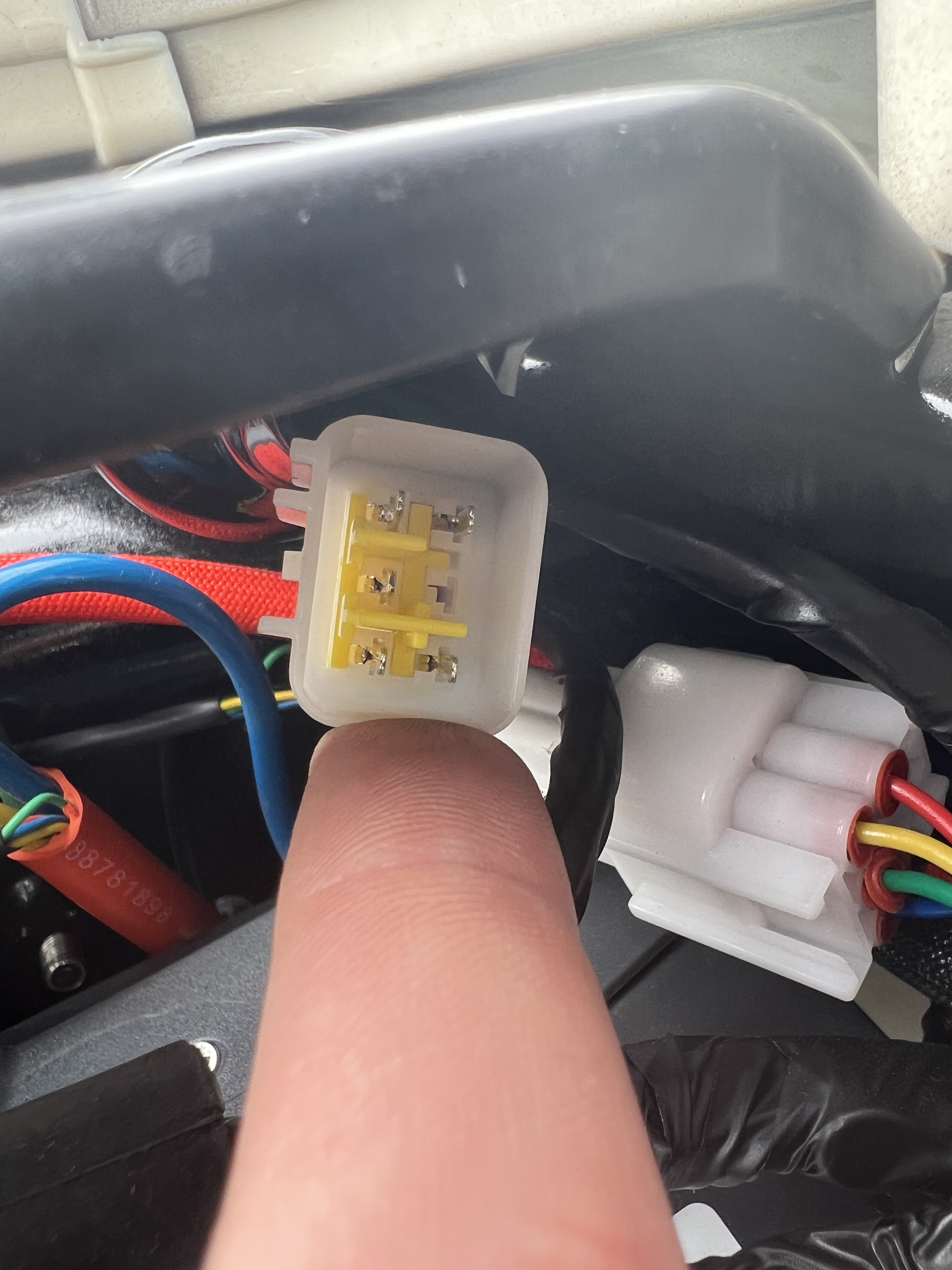 Das ist derselbe Stecker wie direkt dahinter im gesteckten Zustand zu sehen. Dein Motor hat zwei Satz Hallschalter eingebaut, die beide in diesem Steckertyp enden. Der Einzelne ist als Ersatz gedacht, wenn einer der aktiven Hallschalter mal die Grätsche macht. Dann den hintern ausstecken, und den Vorderen mit dem Controller verbinden.