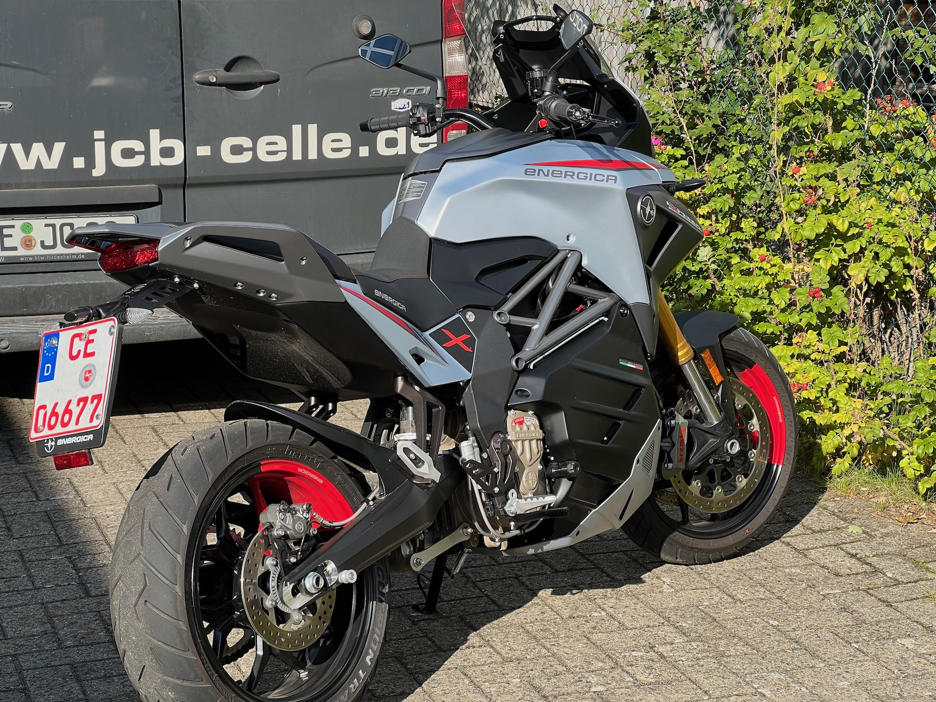 Mein lokaler Energica-Händler JCB aus Celle hat mich vor einiger Zeit angesprochen, dass er einen Vorführer aus der Frühjahrs-Veranstaltung für Kundenfahrten reinbekommt. Heute Termin gehabt und 1,5 Stunden gefahren.