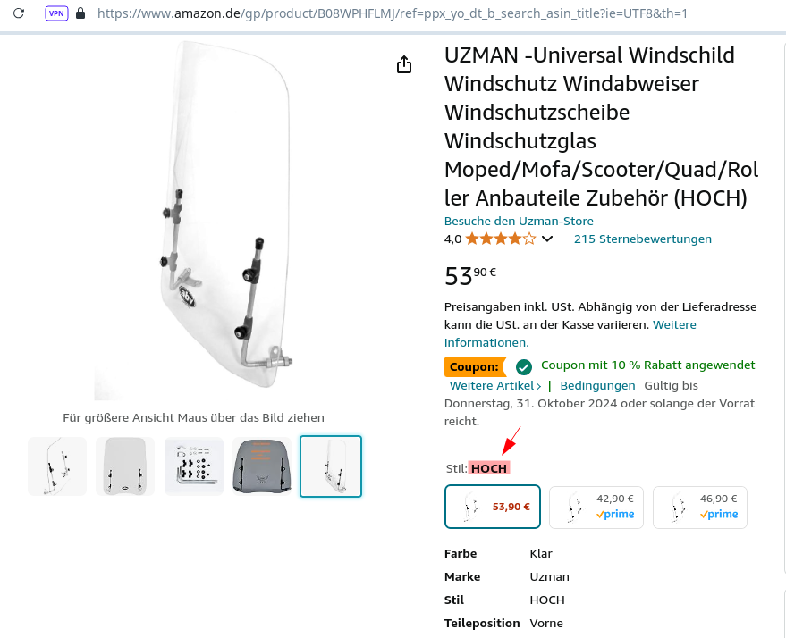 Wer die hohen Kosten des originalen Windshields scheut, könnte auch mit dieser stabil aussehenden Universalscheibe glücklich werden: