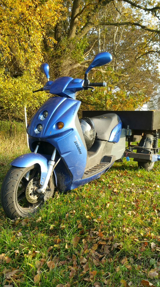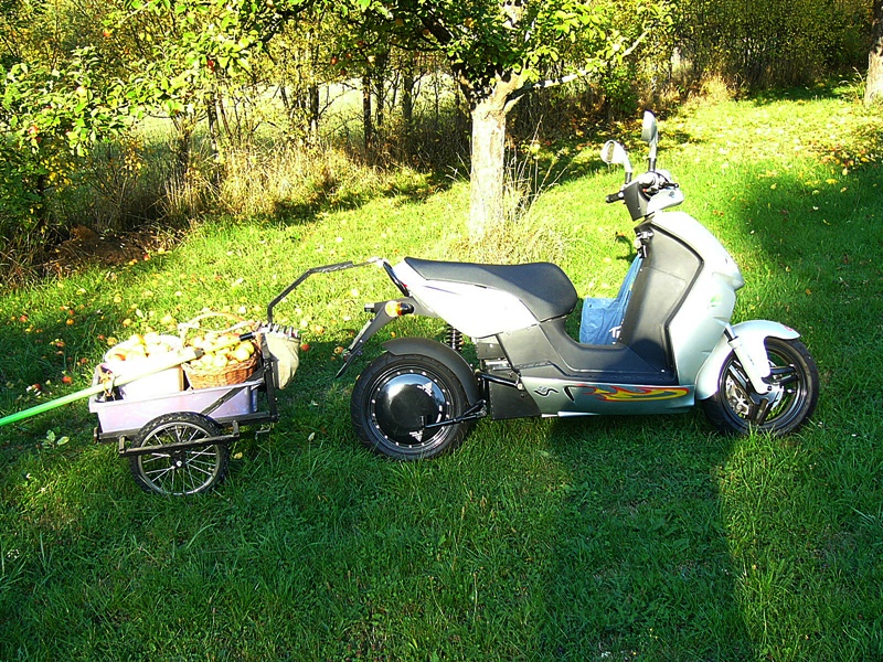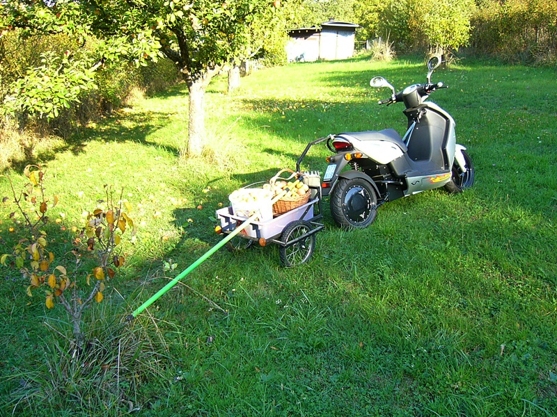 auch mit einem Elektroroller kann man kleine Transporte machen. Ich kam sogar wieder von dem Wiesengrundstück beladen runter und das mit normalen Reifen. LG,