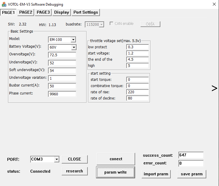 Also Controller ist ein Votol EM 50-4 mit can Bus.
