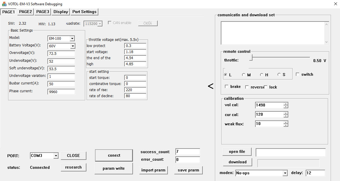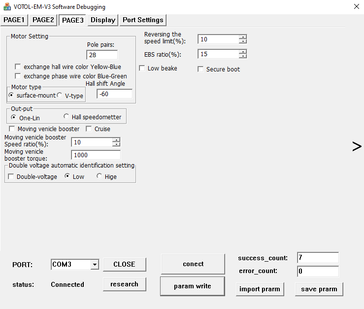 Bei den VOTOL-Controllern spielt es auch eine Rolle, ob die RPM mit positiven Zahlen oder negativen Zahlen angezeigt werden.