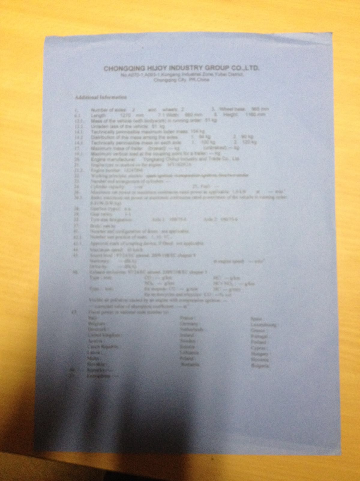 Das ist doch schon alles , was Du für die Versicherung brauchst. Die ID Nummer, den Hersteller und das wars es schon. Mein EC Certificate of Conformity ist weiß und trägt auch keinen roten Stempel, war aber trotzdem ausreichend, um den Mach1 6B zu versichern.