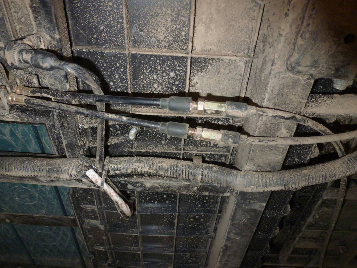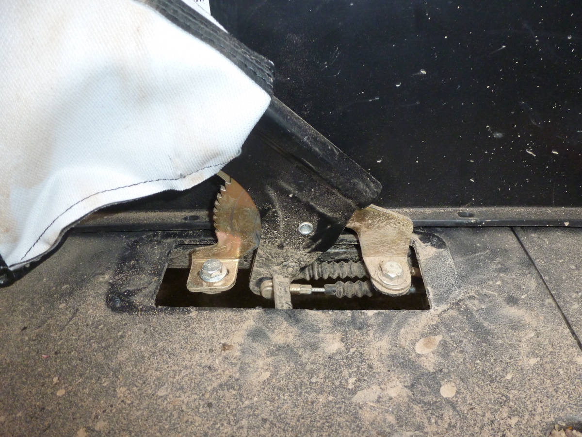 Außerdem gibt es da noch ein drittes Element am Handbremshebel. Das geht auf die Leitung, die im unteren Foto quer zu den Bremszügen verläuft. Das könnte ein Schalter sein. Aber wozu ist der? Was wird da mit der Handbremse geschaltet? Ich weiß, dass beim Max, zumindest bei einem Modell, der Motor ausgeschaltet wird, wenn die Handbremse gezogen wird. Aber beim Quad ist das nicht so. Zumindest war es bei meinem nie so. Also was und wofür ist das?
