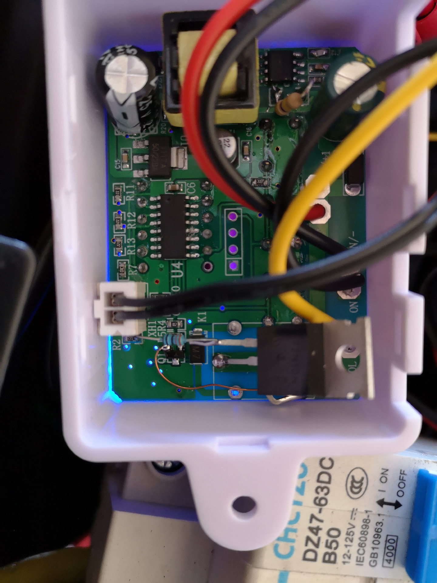 *) Zur Modifikation des Reglers: Damit dieser eigentlich für 110V/220V AC ausgelegte Regler auch mit den 72V DC von der E-Odin sauber arbeitet, habe ich den R18 von 750k auf 470k abgeändert (so liefert das kleine Schaltnetzteil im Regler genügend Spannung auf der Sekundärseite um den Regler-IC sicher zu versorgen und das Relais zu schalten).