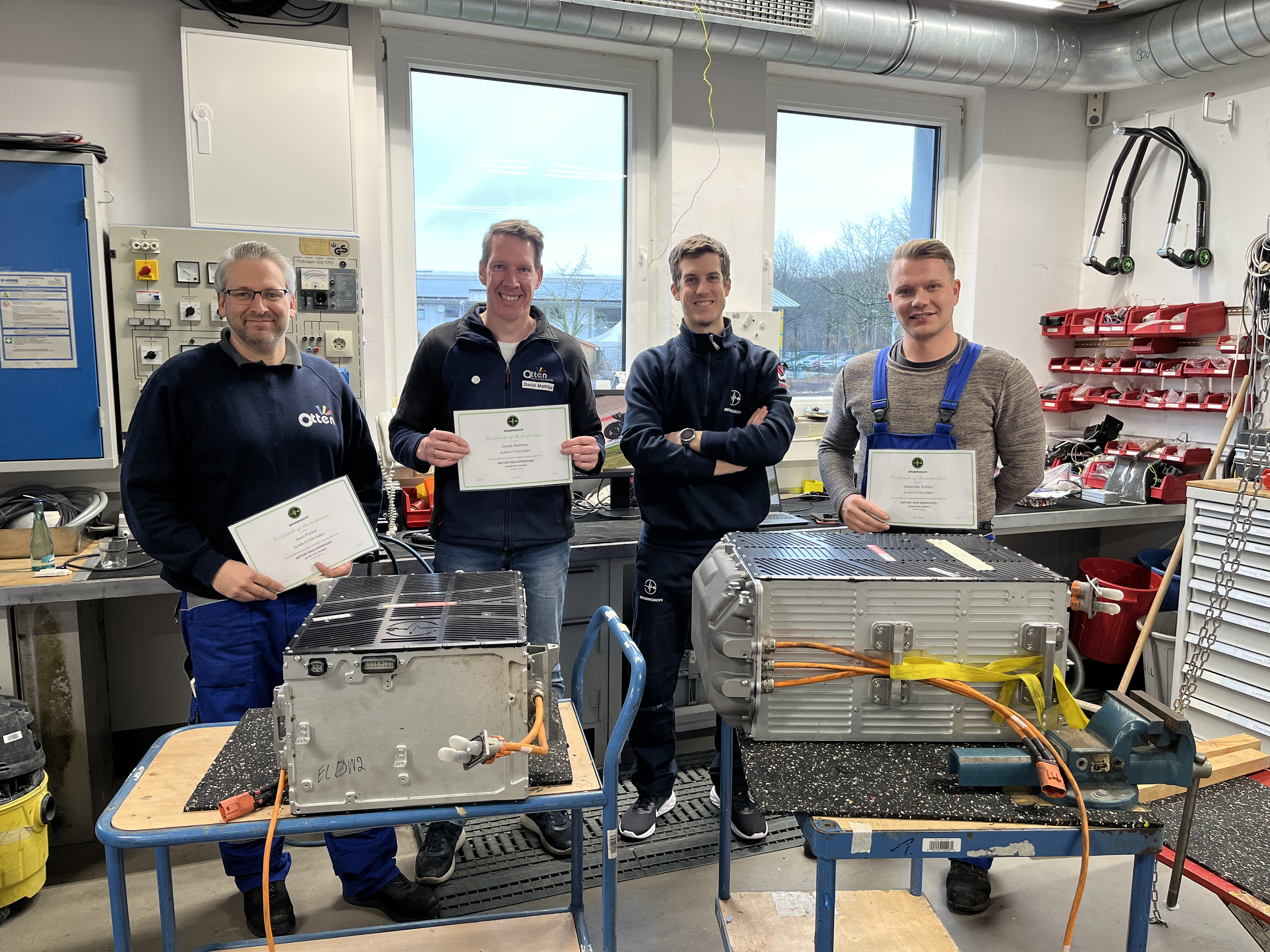 Unsere drei Techniker Alexander, Sven und Daniel, die zuvor bereits über eine Hochvoltqualifikation verfügten, hatten sichtlich Spaß mit Filippo und haben einiges dazu gelernt.