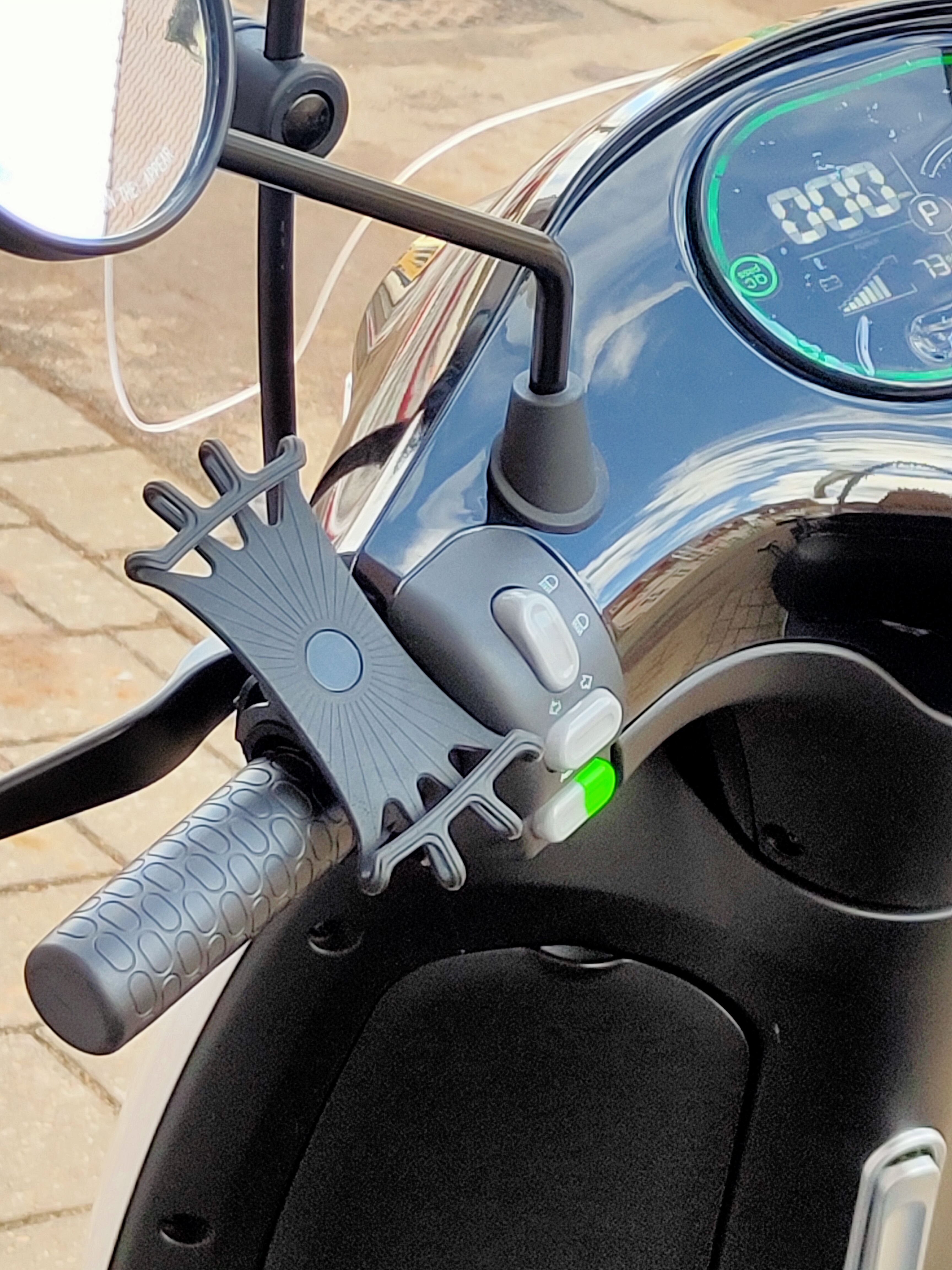 Am Griff befestigt... Und mit den Gummis oben und unten, das ist natürlich besser. Bestimmt auch von der Perspektive. Da muss ich noch etwas umstellen, hatte die Halterung damals direkt mit dem Roller gekauft und montieren lassen, um mich beim Heimweg direkt navigieren zu lassen. Sonst wäre die Horwin Halterung sicher nicht meine erste Wahl gewesen.