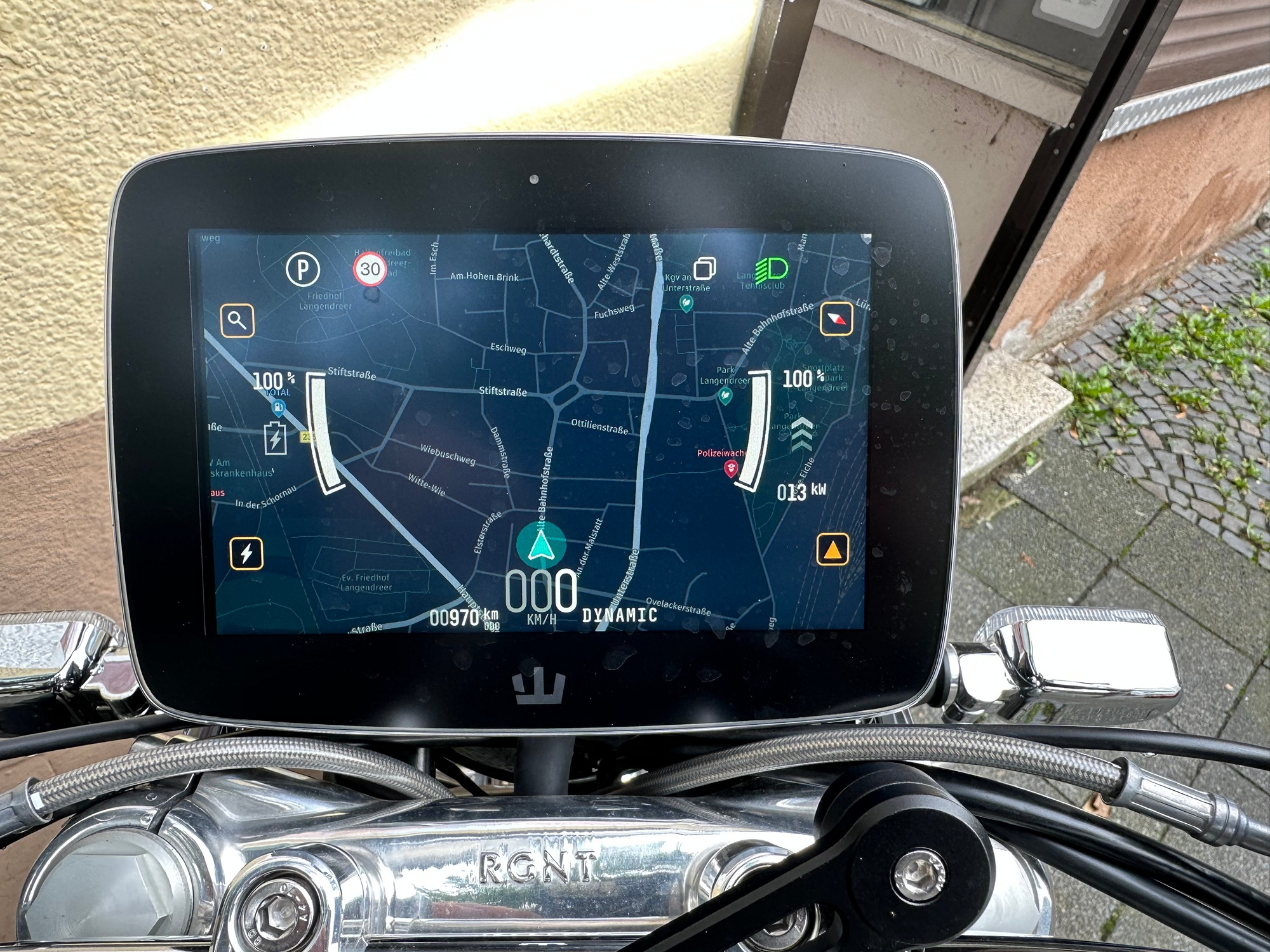 Nun ist das ganze noch in der Weiterentwicklung. Auf der RGNT läuft ein Linux, und das HMI ("Human Machine Interface" soll das wohl heißen) ist mit QT entwickelt worden - das ist also ein flexibles System, das recht einfach Weiterentwicklungen und Anpassungen zuläßt. Da kann der Entwickler auch programmieren und auf dem Laptop simulieren, ohne gleich jede SW-Anpassung auf ein Moped übertragen zu müssen. Da schiebt man beispielsweise dem finnischen Entwickler(team) einen Auftrag zu, die arbeiten den am Laptop im Homeoffice ab, spielen das Ergebnis zurück nach Schweden und da schiebt es der Counterpart erstmalig auf ein Moped zum Livetest. Ich finde das schon recht interessant und professionell.