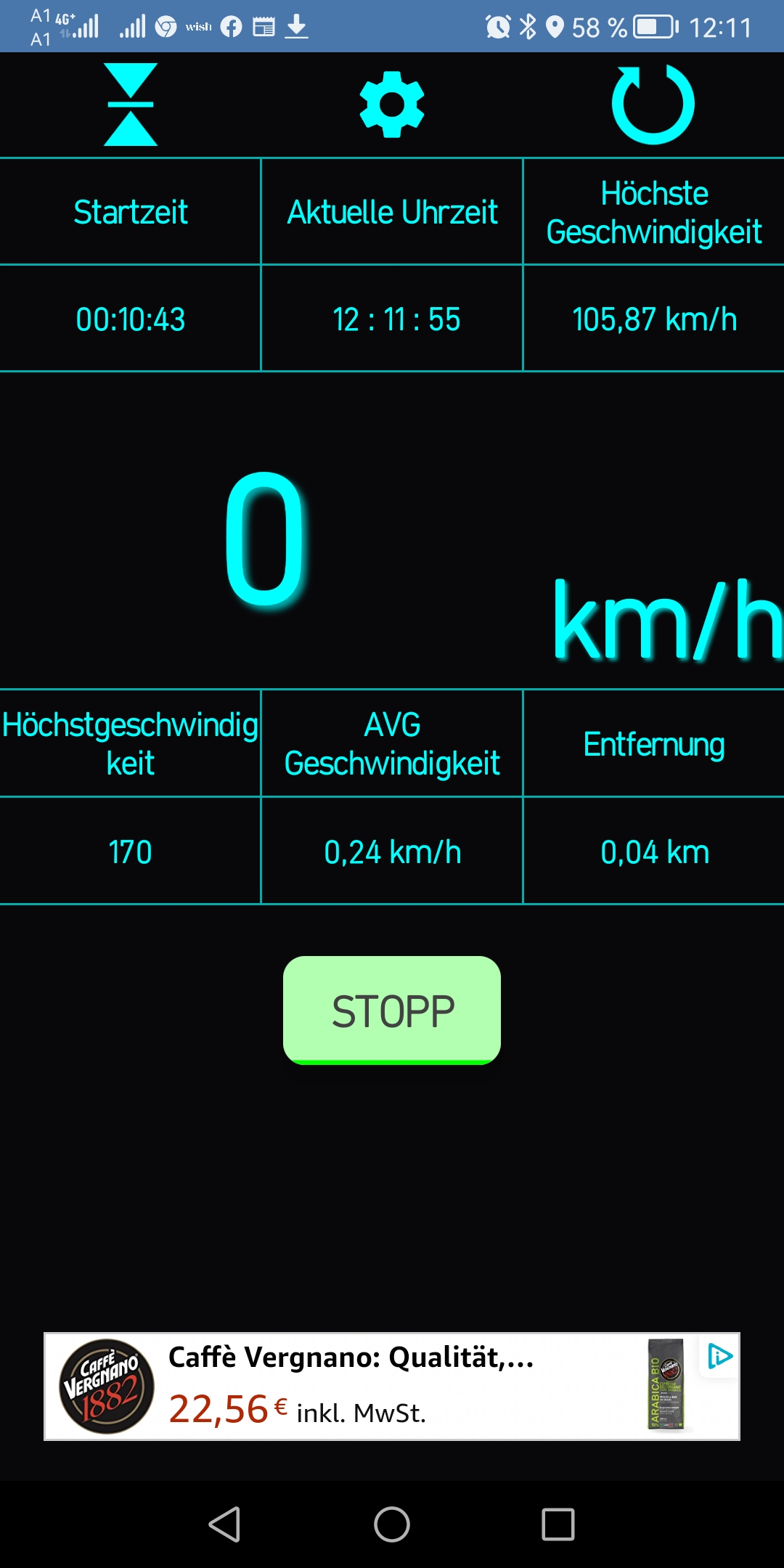 Gerade high speed gecheckt:laut Tacho 114 kmh mit der App gemessen 105,8 kmh. Akku ca. 80 Prozent voll
