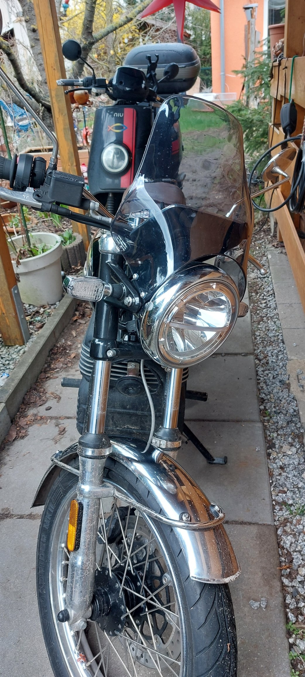 Die Wahl fiel auf die Puig CS1. Das Teil hat eine ABE für eine Menge Motorräder, ist gerade bei Fahrzeugen im klassischen Design mit Rundscheinwerfer beliebt, sehr einfach zu montieren, und der Preis je nach Quelle zwischen 25 bis 40€. Also Shopping vor Ort gemacht, Zusage der Rücknahme, wenn es denn gar nicht passen sollte bekam ich auch, und dann zu Hause montiert.