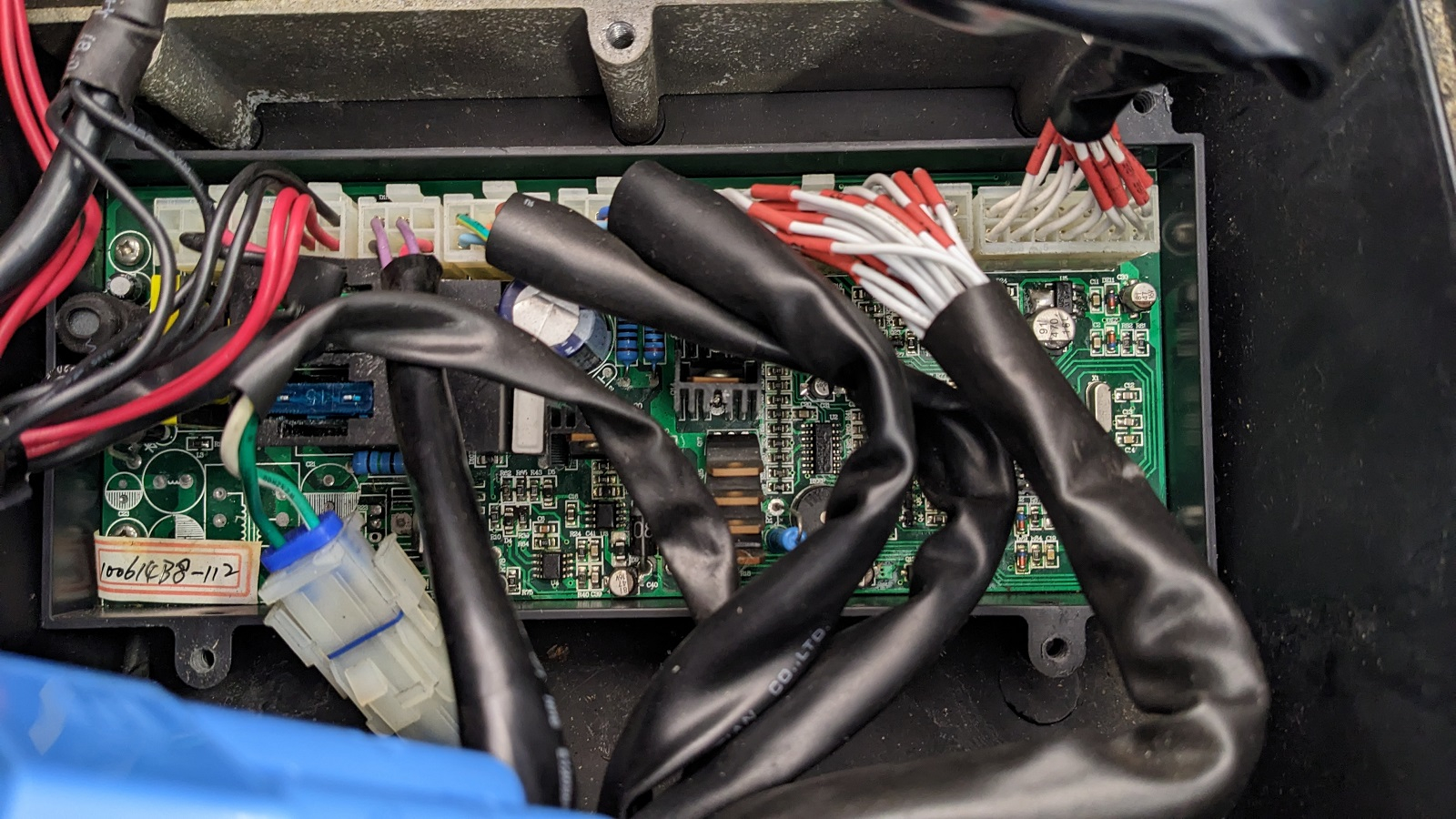 Ich mußte erstmal feststellen, daß der eine Roller definitiv einige Kilometer gesehen hat und wegen Defekt dort stand -Motor geöffnet- der andere schon mal teilgeschlachtet wurde für Ersatzteile. Unter anderem war bei dem ein nagelneuer Motor verbaut an dem der Hallgeberstecker abgekniffen und neu verlötet- von 8 poligen Stecker auf 6 poligen, inklusive zwei frei rumhängender Adern die nicht angeschlossen wurden. Von Korrosion durch Luftfeuchtigkeit mal ganz zu schweigen.