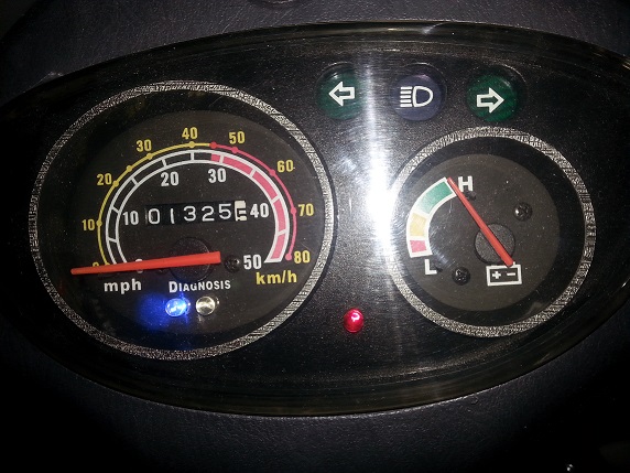 -im Frontscheinwerfer ist eine kleine Standlichtlampe(?), die leuchtet ganz schwach, wenn man das Licht einschaltet, die Hauptbirne leuchtet nicht (ist aber nicht durchgebrannt). (Foto 4)