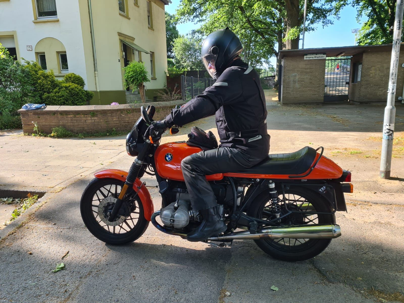 Ich sitz irgendwo auf der Mitte der SR/S Sitzbank. Und auch auf einem meiner anderen Motorräder nicht dicht am Tank. Das würden meine Hüftgelenke nicht gut finden. Zudem sind es ja keine Supermotos oder Crossmaschinen. Die sitzen tatsächlich schon fast auf dem Tank. Um Gewicht auf‘s Vorderrad zu bringen.