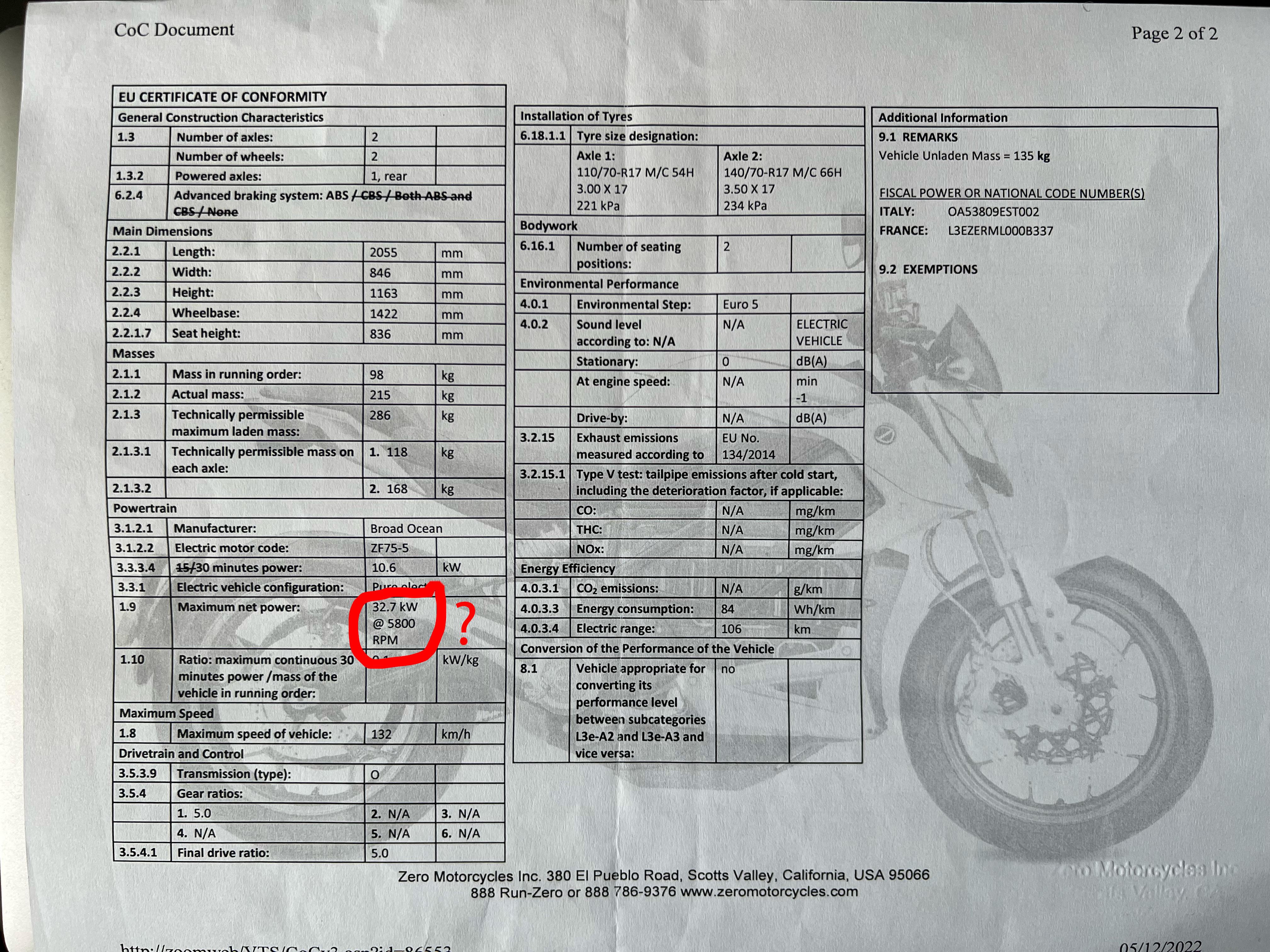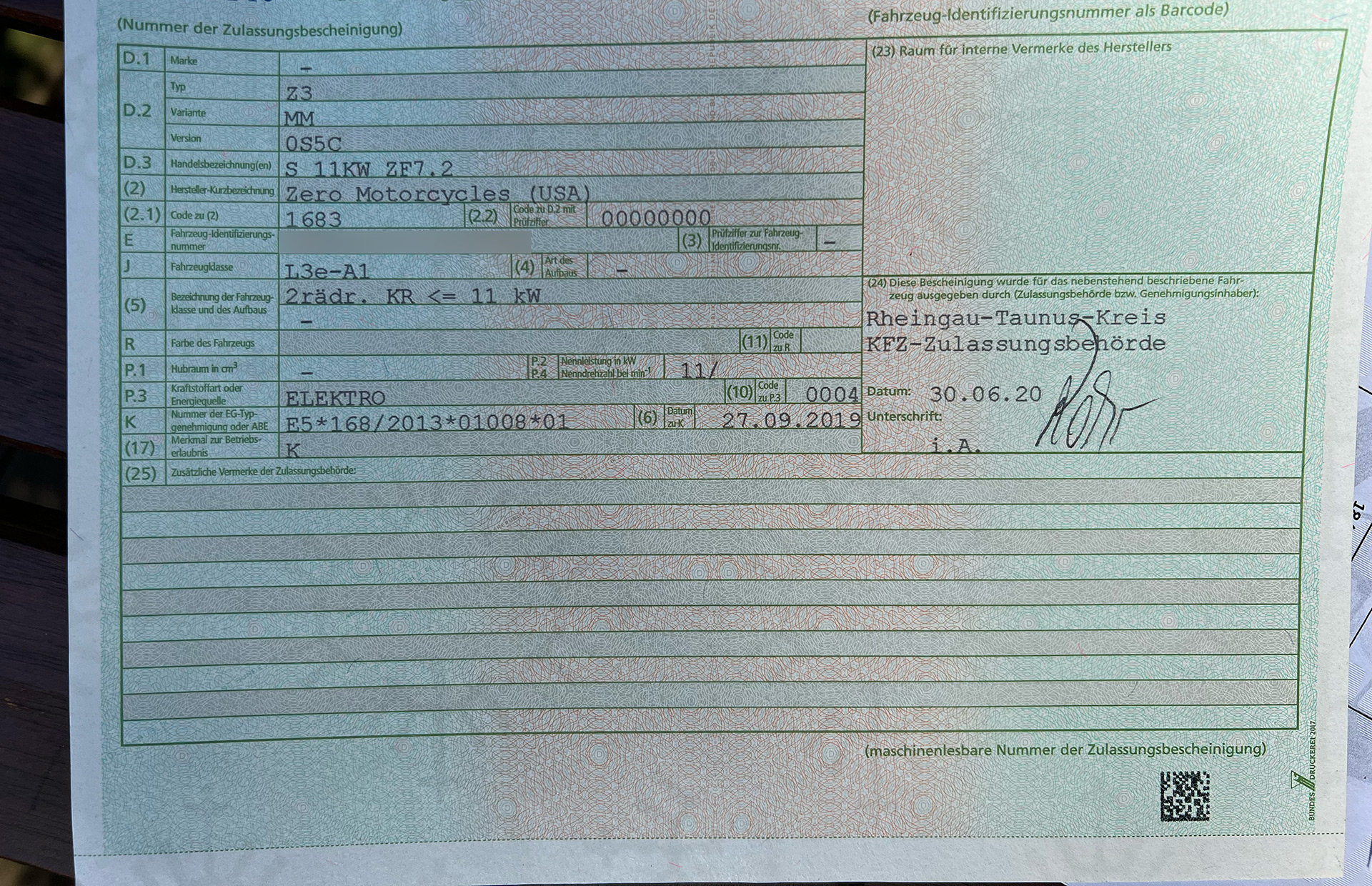Ist das so korrekt ? Die COC meiner alten "Zero S" habe ich gerade nicht als vergleich zur Hand.