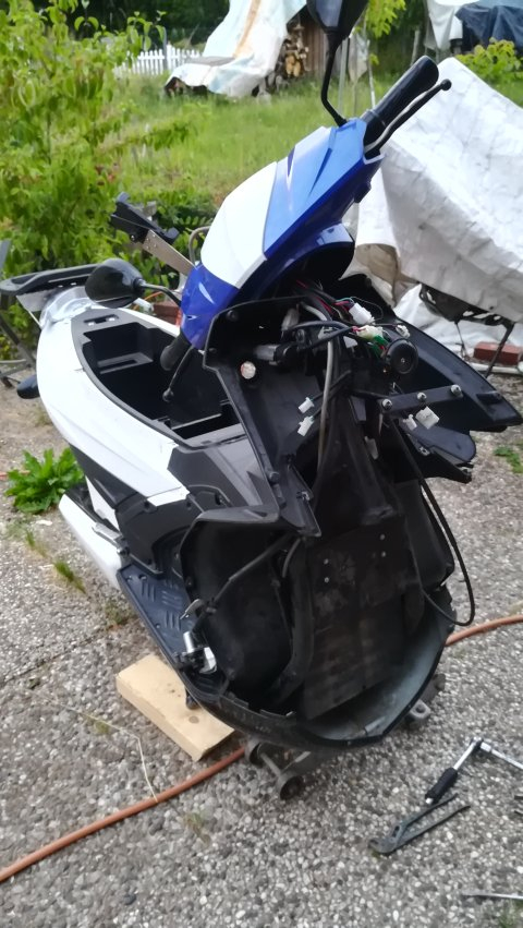 Zur Ehrenrettung von Fritz muss ich auf jeden Fall betonen, dass er sich um alles kümmen will, Ersatzteile von seinem nagelneuen Chassi-pur Roller angeboten hat, und sogar angeboten hat, den Roller wieder abzuholen (noch mal 900km...) und alles in Ordnung zu bringen. Aber so schnell gibt Schrauber-Phil nicht auf, und Fritz hat eh schon jede Menge Add-Ons gemacht, die wohl selten ein 'normaler Verkäufer' gemacht hätte. Fritz ist echt Klasse!! Und jetzt ist es ja mein Roller, und so eine Herrichtung verbindet ja auch.