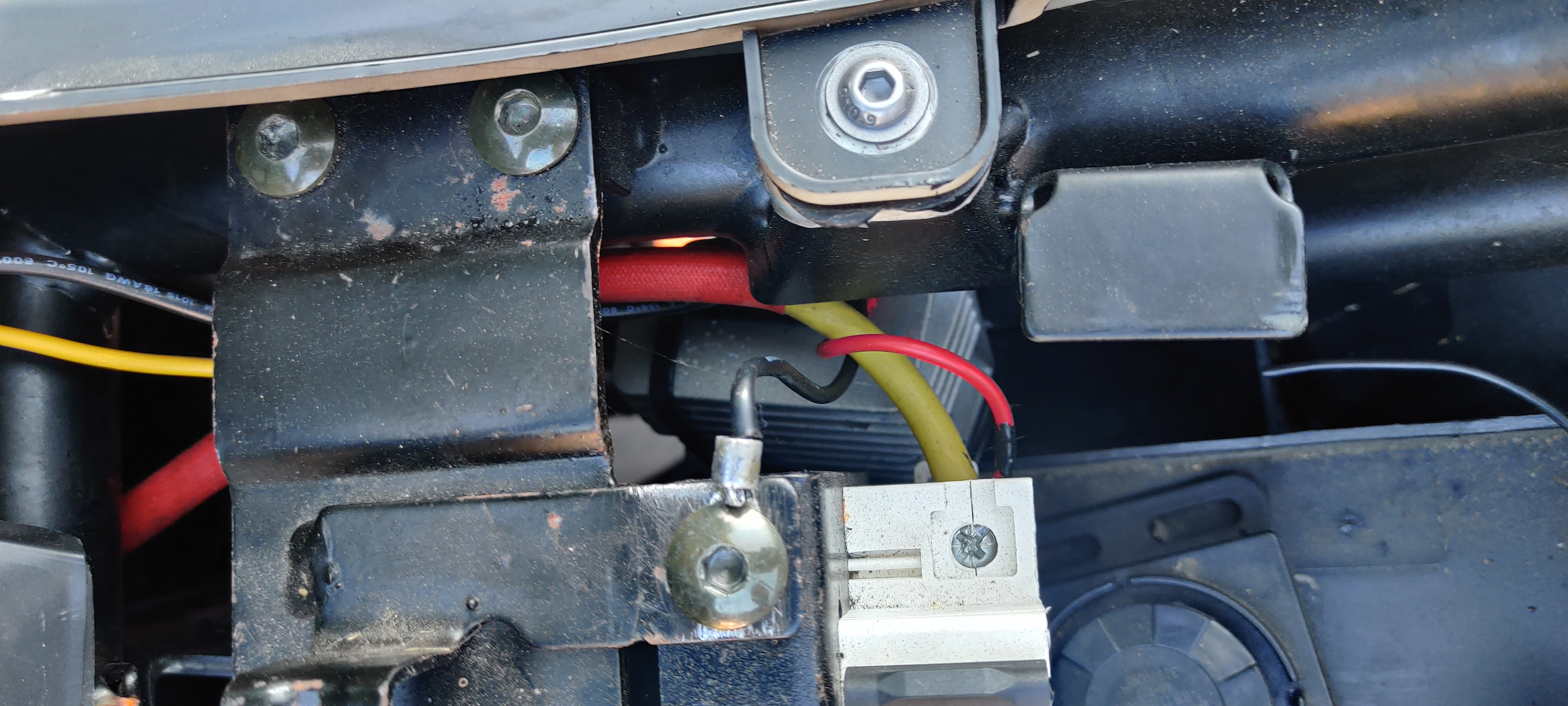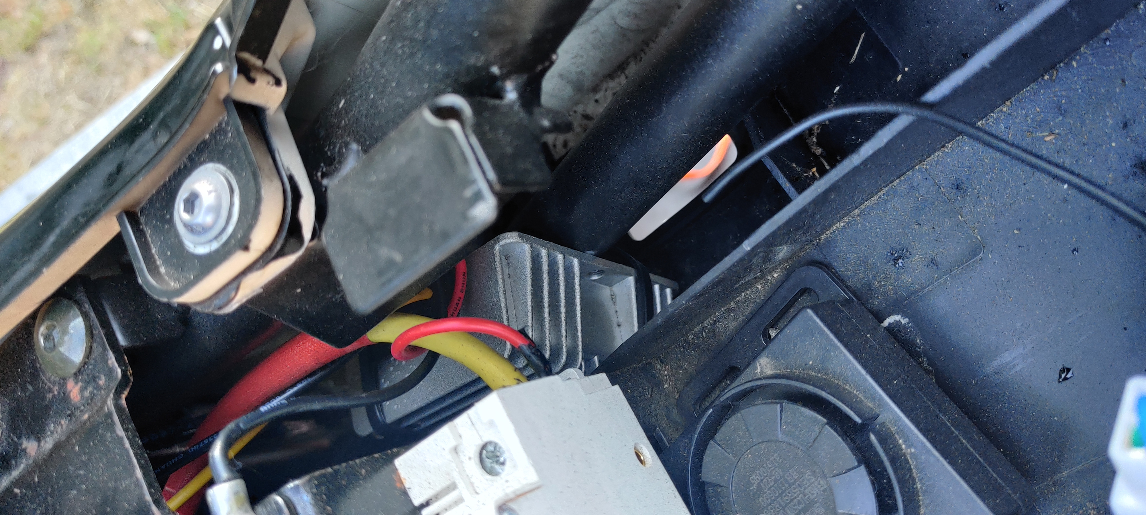 Der Ansatz mit dem 12V Wandler erscheint mir ganz passend. Vor ein paar Wochen hatte ich das Motorrad in der Werkstatt um einen 12V Wandler einzubauen und Griffheizungen anzumontieren. Leider haben die das nicht hinbekommen und den Auftrag abgebrochen. Anschließend war die Frage, ob ich den 12V Wandler dann überhaupt brauchen würde und mir wurde gesagt, dass sie mir das Motorrad einfach wieder zurückgeben. Beim prüfen des Hauptschalters ist mir aber aufgefallen, dass der Wandler verbaut ist. (Siehe Bilder)