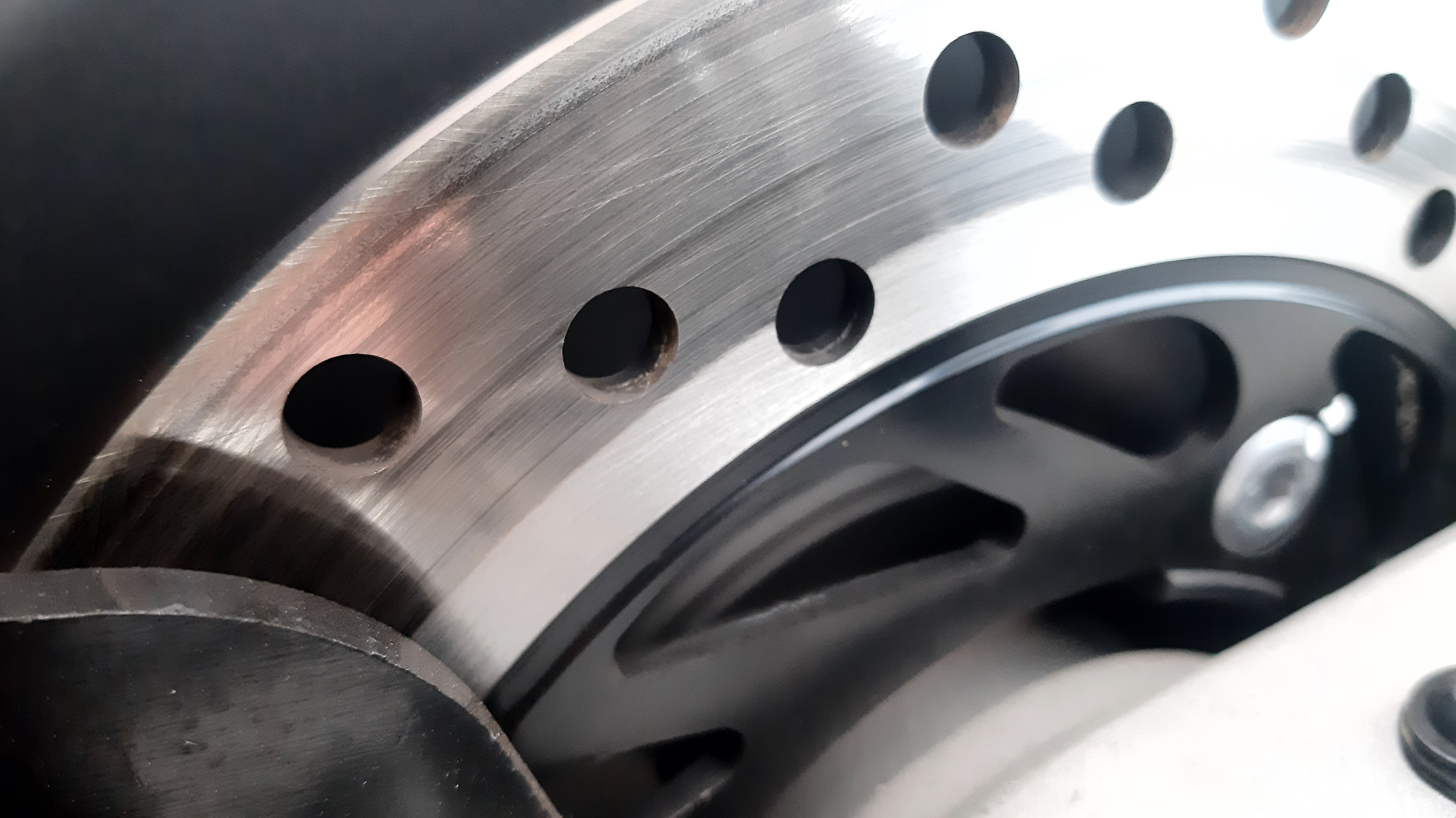 Ist das bei euch auch so das die hintere Bremsscheibe nur zu 3/4 zum Bremsen benutzt wird? Oder sind die Beläge zu klein?