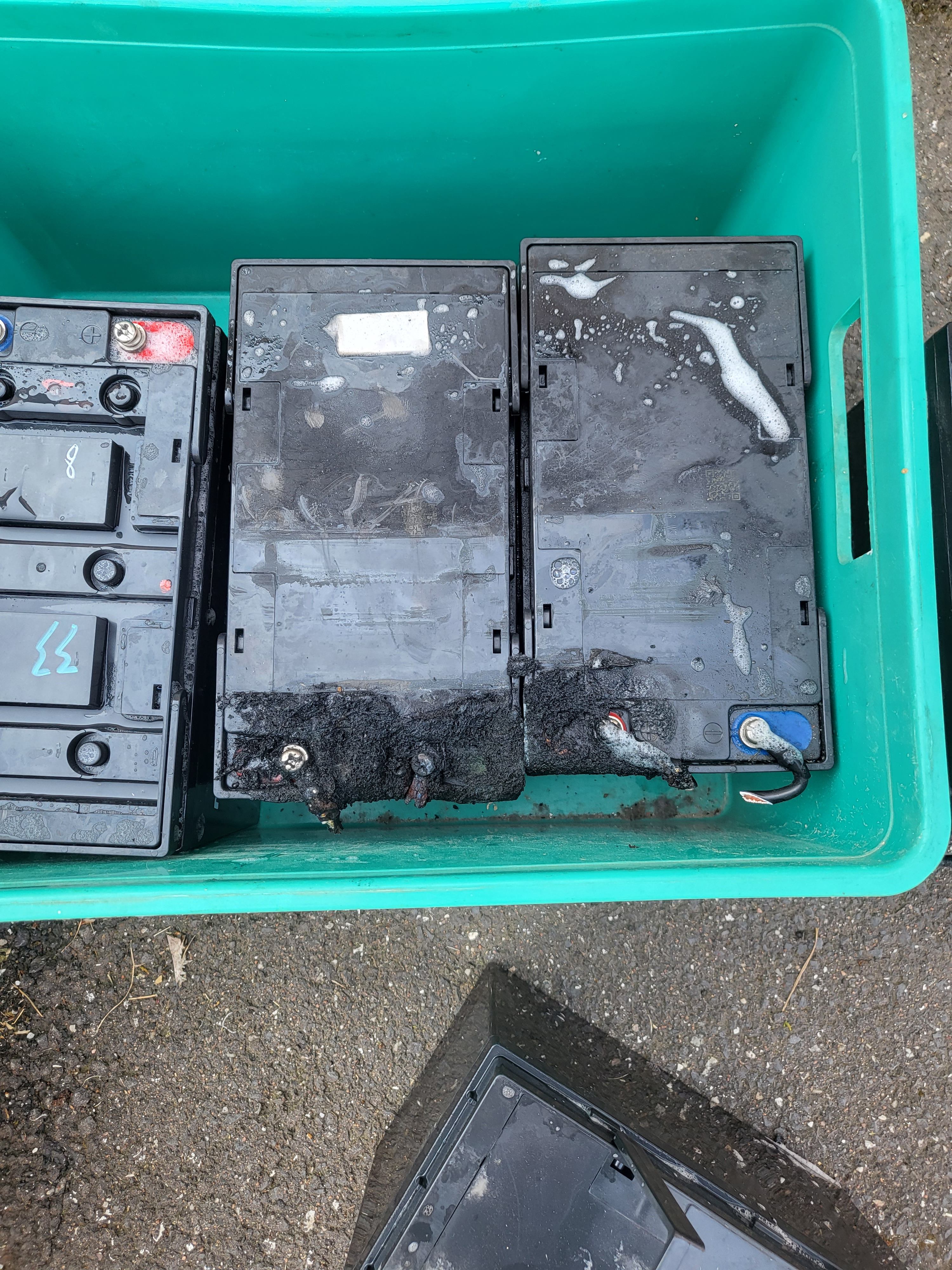 Ggf. auch noch verbunden mit einem Kurzschluss-Problem nachdem das isolierende Plastik an aufliegenden Kabeln oder einem der Batterieblöcke weich geworden ist.