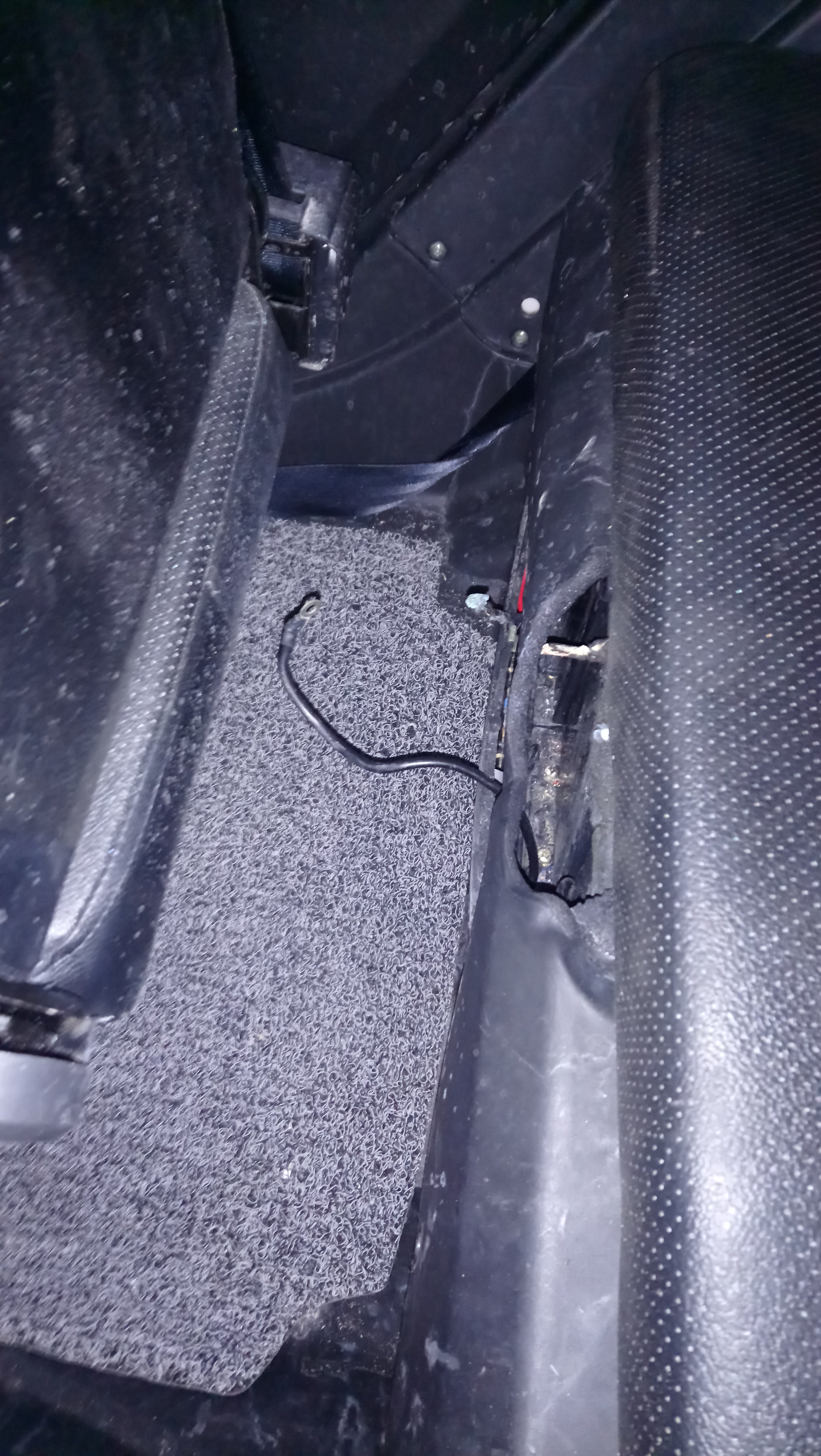wenn ich das so betrachte, genau unter der vorderen Sitzkante.Das scheint die hintere Sitzbank zu sein, und wer Kinder kennt, wenn sie Freude haben, hopsen sie ja schon gerne mal auf der Sitzkante rum. Wenn da mal nicht 2 Kabel übereinander lagen und durch den Druck von oben sich durchgescheuert haben? So ne Ummantelung ist verdammt schnell durch wenn die Kabel warm sind . Und Plus und Minus blank aufenander , dann sieht es so aus.