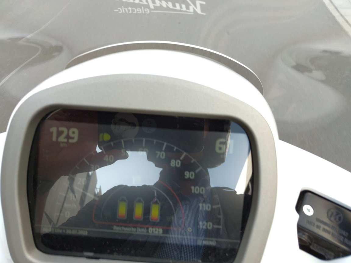 P.S.: Sorry für die schlechte Qualität. Um die Anzeige der beiden Werte sichtbar zu machen, muss der Roller fahren. War aber im nicht öffentlichen Bereich
