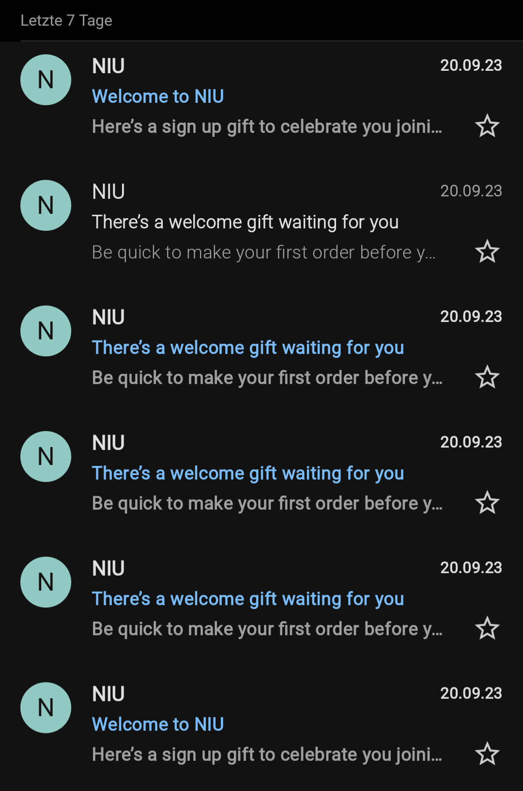 Nachdem ich neulich ständig Werbung für den neuen Scooter bekommen habe, habe ich alle Newsletter abbestellt. Seitdem kam von Niu nichts mehr bei mir an.