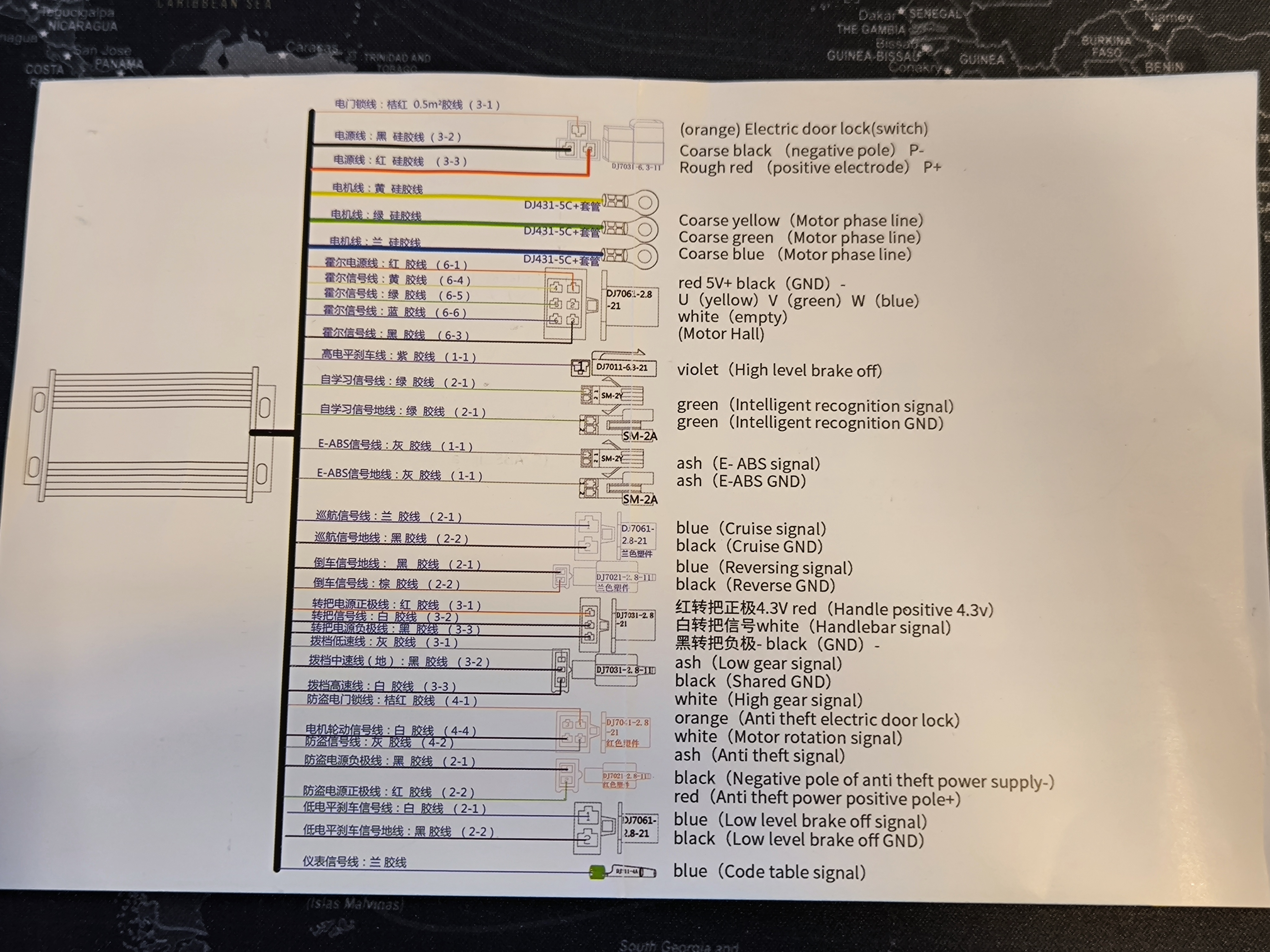 EABS verbunden mit GND könnte eventuell direkt den Vortrieb abschalten und Bremsen (falls der Motor dreht). Das würde ich ersteinmal auseinanderlassen, bis der Motor dreht und dann erst probieren wie es wirkt.