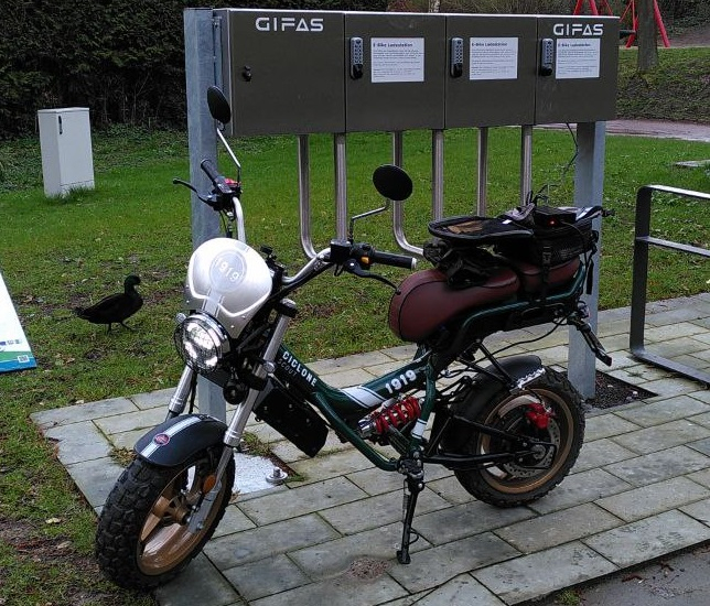 Garelli hat wohl auch eine e4 Version der Ciclone, mit 2.5kWh Akku (72V 35Ah) und 4kW Leistung. Diese geht dann bis 70km/h, zählt also als 125er. Hat die gleichen Dimensionen wie die e2, kostet aber fast das doppelte.