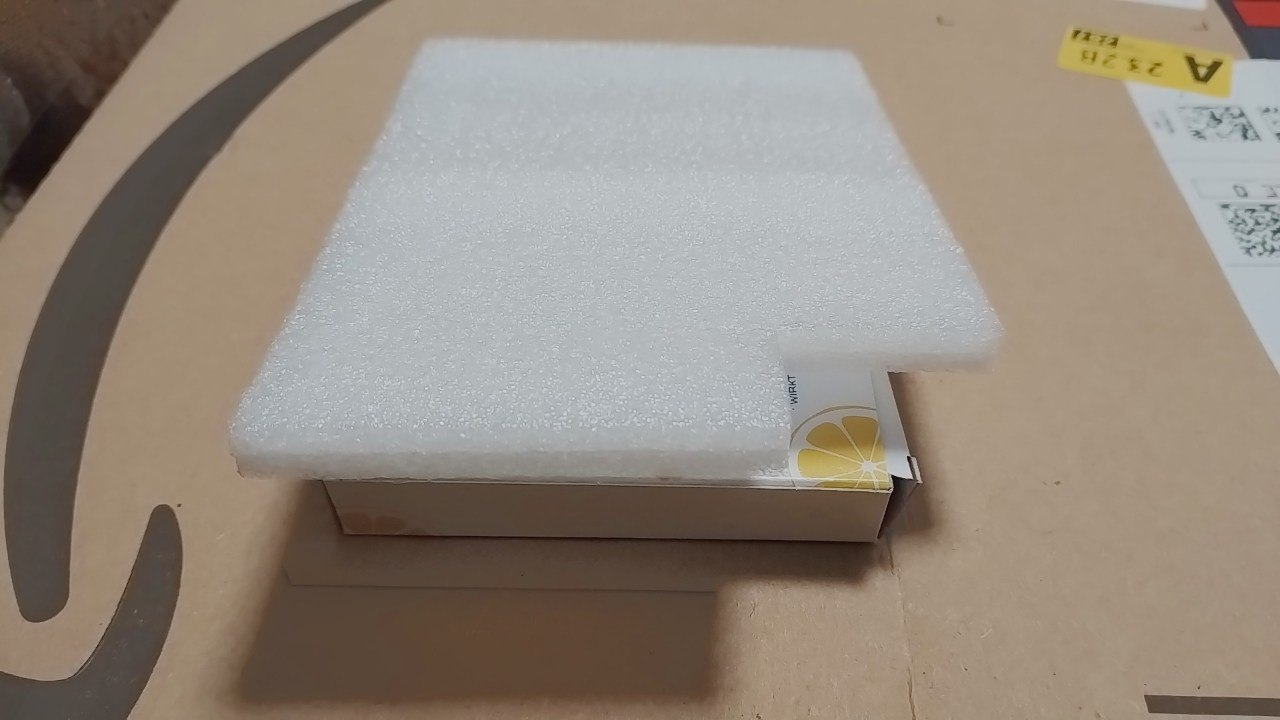 Nun habe ich mir überlegt, wie man die Sensivität der Alarmanlage herabsetzen könnte. Dazu habe ich mir ein Schaumstoffstück auf die Große 3 x 2 cm, ca. 5mm dick, zurechtgeschnitten, dann noch einen kurzen Schlitz auf der langen Seite mit der Schere eingeschnitten.