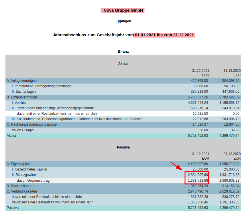 Laut der letzten veröffentlichten Bilanz hat NM im Geschäftsjahr 2021 453.283,72 € Gewinn gemacht (errechnet sich aus der Differenz von Bilanzgewinn minus Gewinnvortag). Was an den/die Geschäftsführer an Vorstandsgehältern ausgezahlt wurde, ist dabei noch gar nicht eingerechnet.