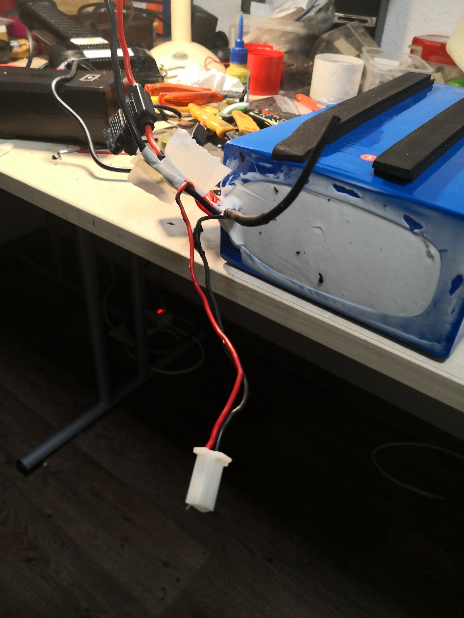 Irgendwas sieht an dem Ladeanschluss eh nicht so ganz "orginal" aus, wenn ich Dein Foto vom Akku groß ziehe. Geht denn die schwarze Minusleitung auch weiter? Sieht aus wie eine "abgezwickte" schwarze Kabeltülle. Oder soll das eine Gasentlüftung sein?