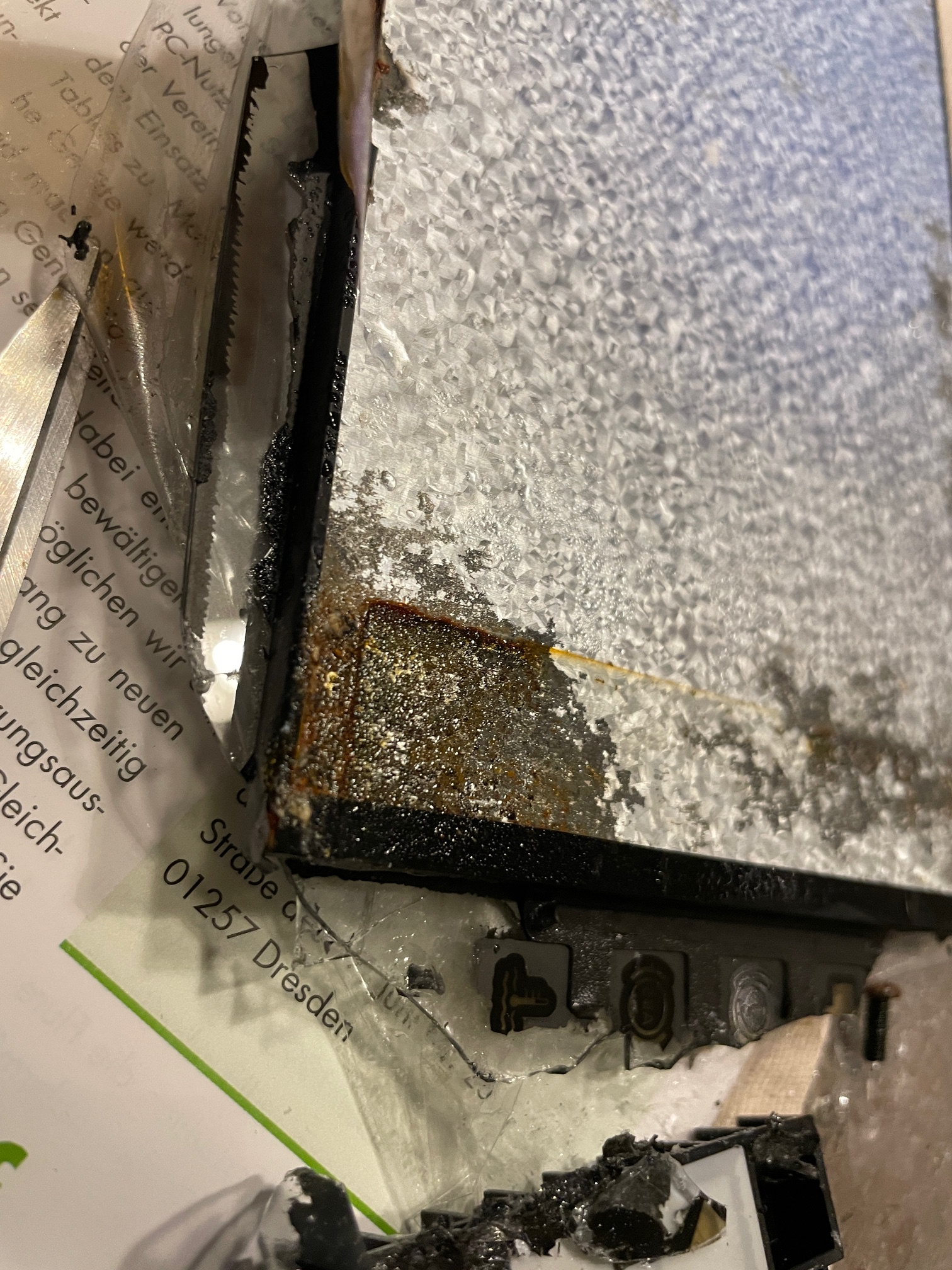 Selbes Schadensbild wie bei mir . Untere linke Ecke vom Display hat angefangen zu rosten.
