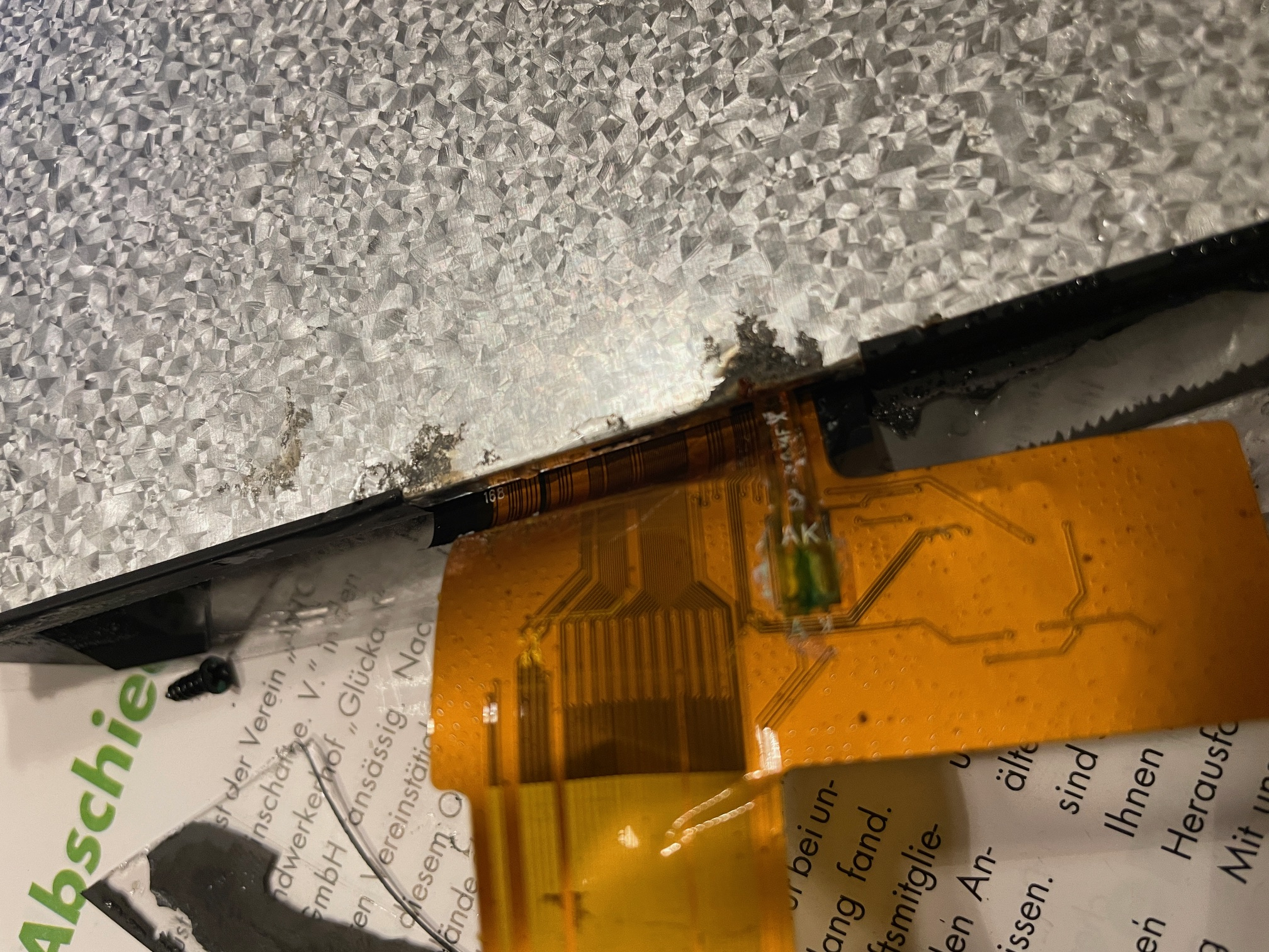 Da wir ja nun unsere Teile verbaut haben , konnte ich auch das Display von xshunin zerlegen . Der Schaden wir hier schon etwas größer.