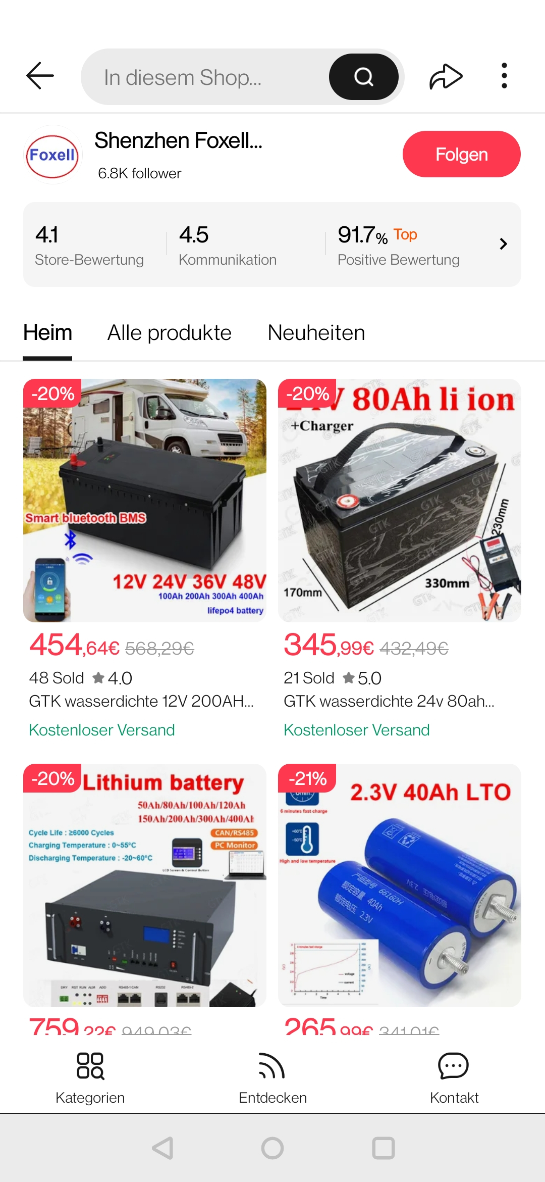 Man kann auch 24 LFP-Zellen für einen Solar-Akku (in D von der MwSt. befreit) kaufen und diese selbst mit BMS (etwa 100€) zusammenstellen: