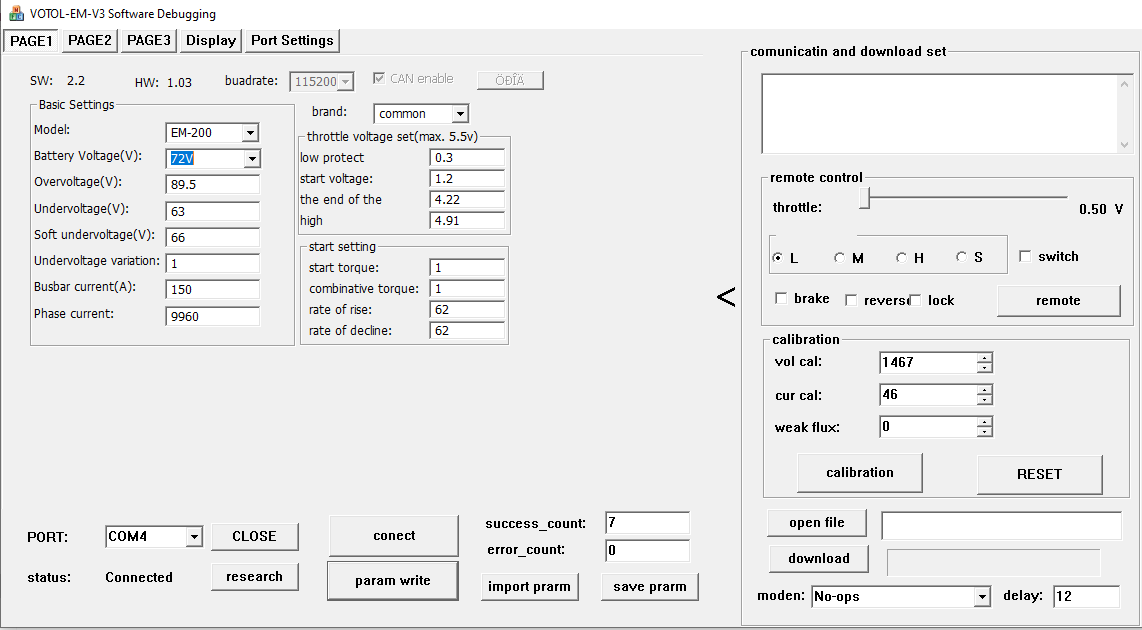 Jetzt habe ich einen Votol EM-200SP mit CAN motortype: z siaecosys-xy10-can-210420-043 und diesen möchte ich in das Wägelchen implementieren.