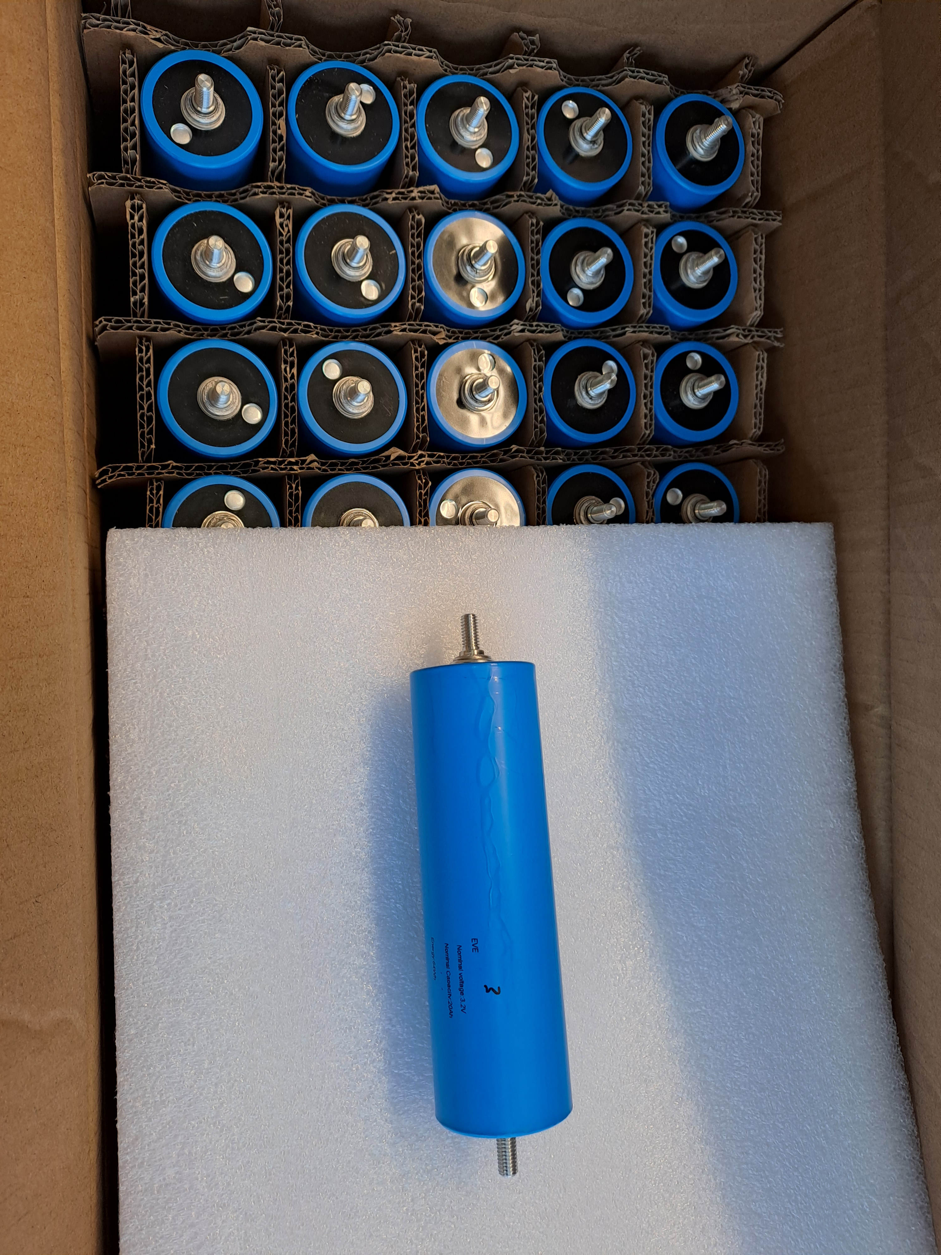 Heute kamen die 48 Stück Eve C40 Lifepo 20Ah Rundzellen von NKON in Holland an