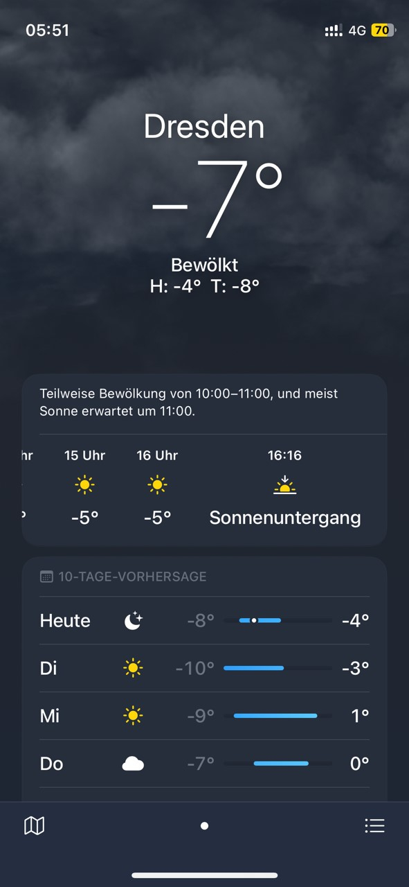 Da ich erst heute erst spät nach Hause komme (nicht vor 20:00 Uhr) ist die spannende Frage, ob ich auf dem 32km-Rückweg den Akku so warm bekomme, dass ich für morgen wieder laden kann.