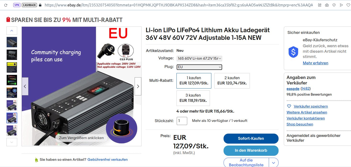 Ich habe nach einem neuen Ladegerät für meinen eSwan gesucht, und zufälligerweise diese Kleinanzeigen-Auktion gesehen: